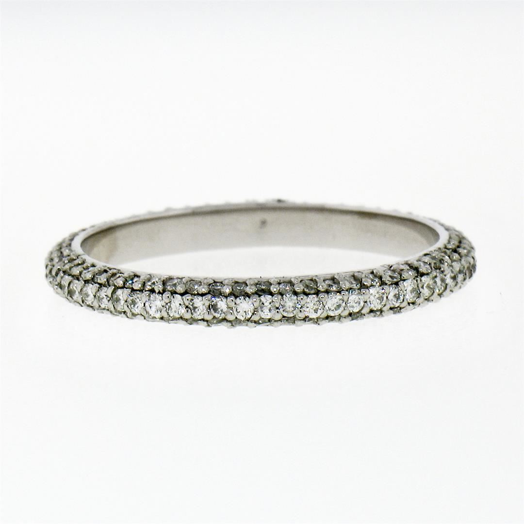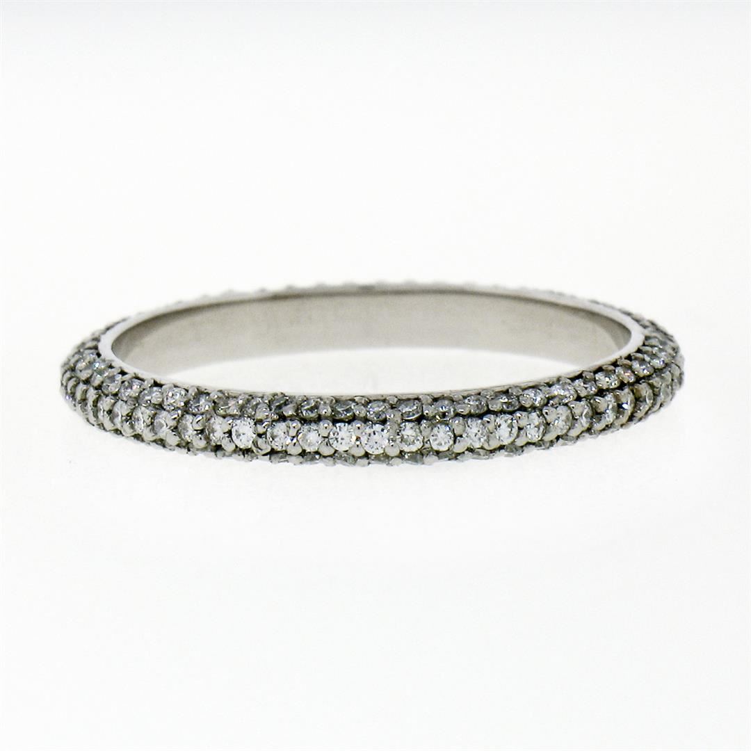 A new solid 14k white gold eternity band ring, with 165 round brilliant cut natural diamonds (G/H- VS2/SI1; 0.85ctw). The ring is size 6.5, weighs a total of 1.70 grams, and measures 2.30mm wide.