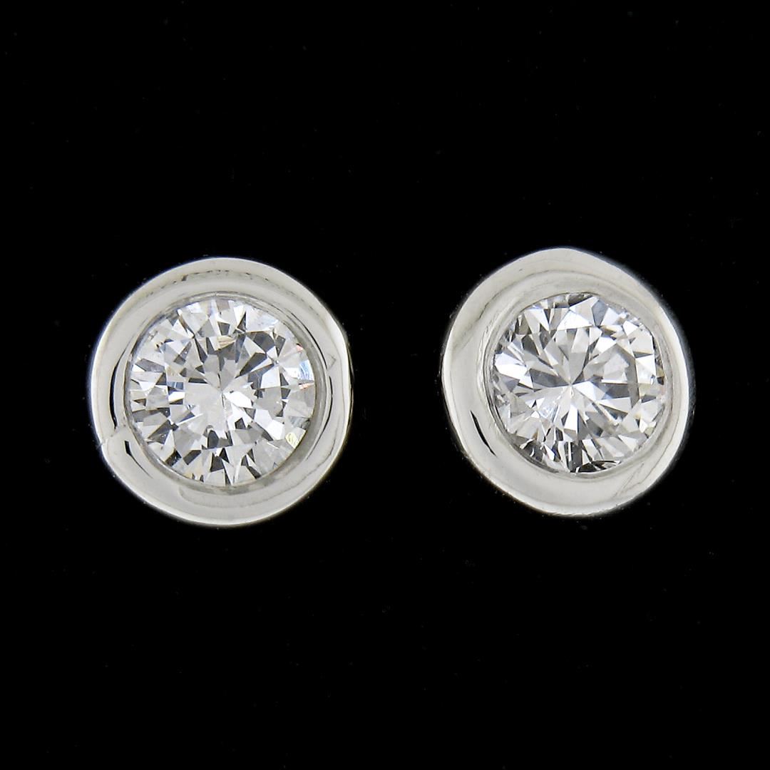 New 14k Gold 0.20ctw Martini Bezel Set Round Brilliant Cut Diamond Stud Earrings