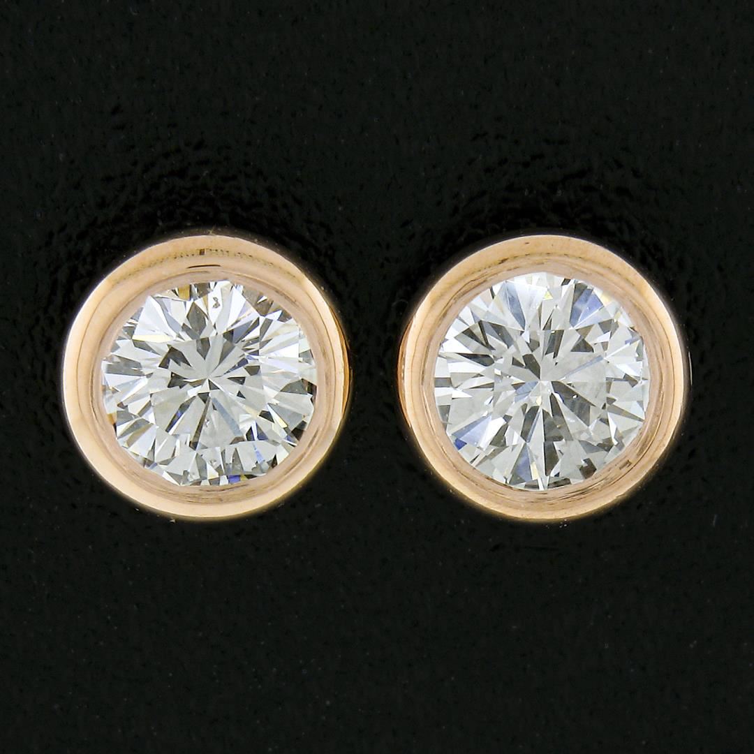 A new solid 14k rose gold stud earrings, with 2 round cut natural diamonds (F/G - VS1/VS2 ; 0.47ctw). The earrings measure approximately 5.6mm and weigh a total of 0.83 grams.