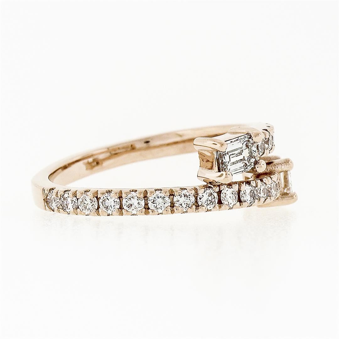 A New solid 14k rose gold Moi et Toi bypass band ring, with 2 emerald cut natural diamonds (G/H - VS1 ; 0.42ctw), with 26 round brilliant cut natural diamonds (G/H - VS1/VS2 ; 0.50ctw). The ring is size 6.0, weighs a total of 3.00 grams, and measures 7.