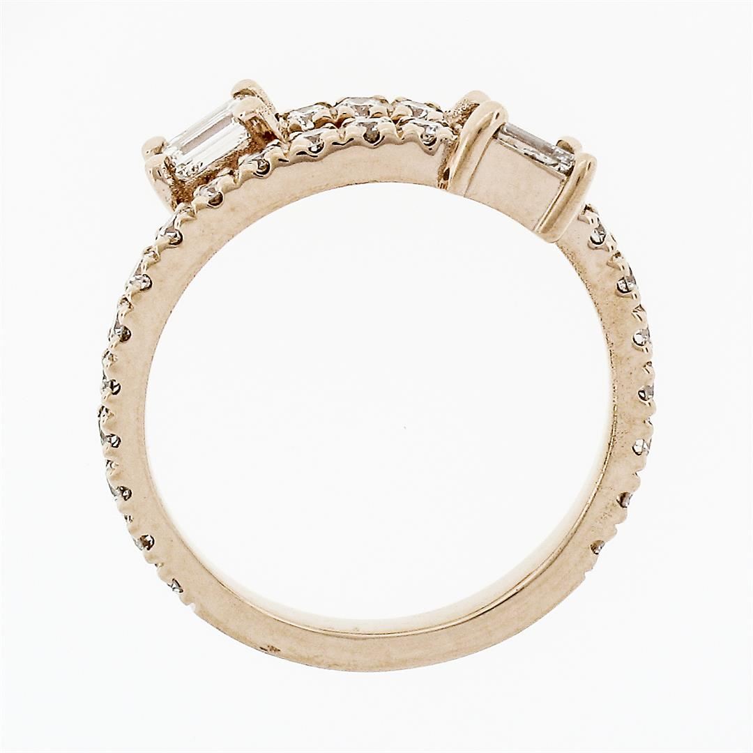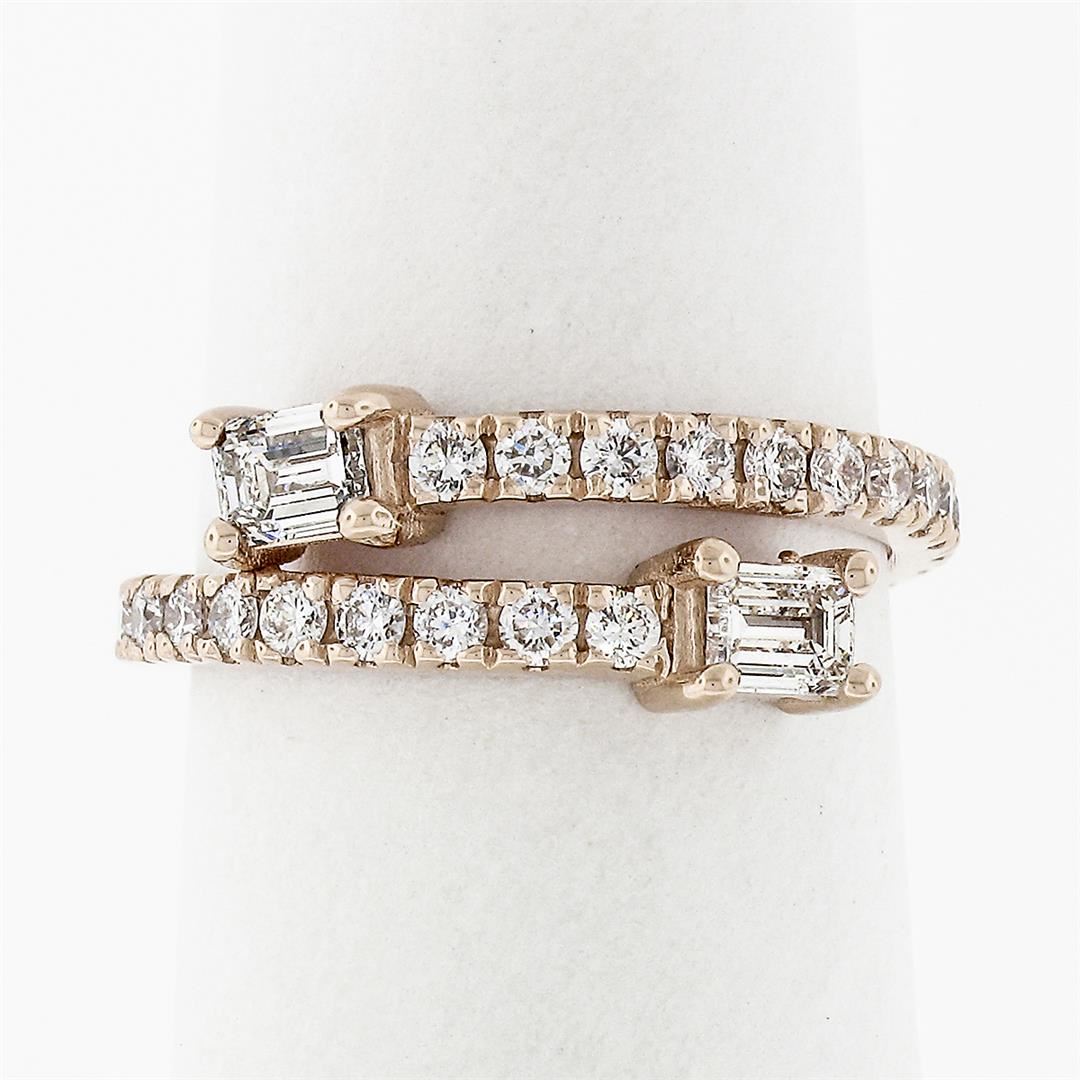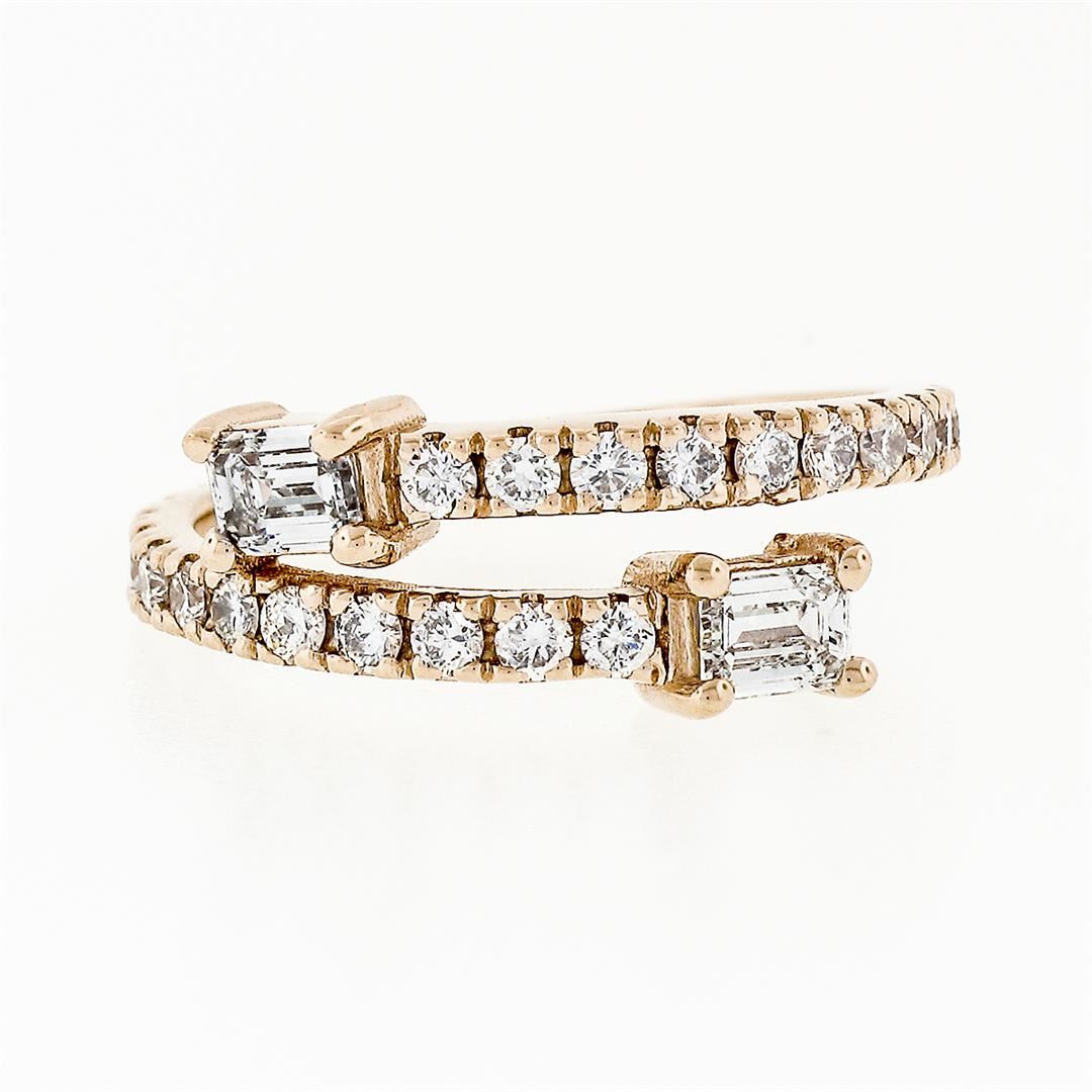 A New solid 14k rose gold Moi et Toi bypass band ring, with 2 emerald cut natural diamonds (G/H - VS1 ; 0.42ctw), with 26 round brilliant cut natural diamonds (G/H - VS1/VS2 ; 0.50ctw). The ring is size 6.0, weighs a total of 3.00 grams, and measures 7.