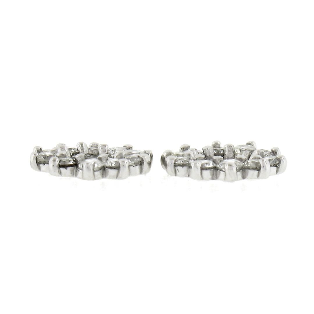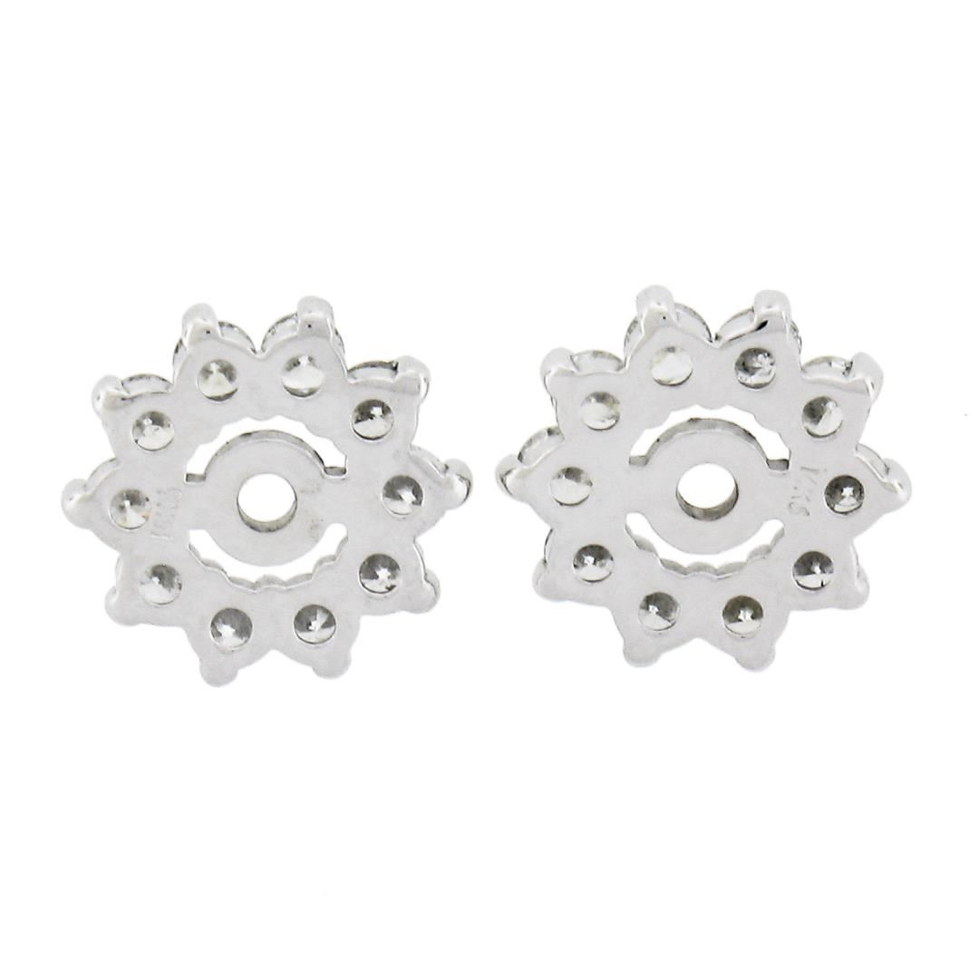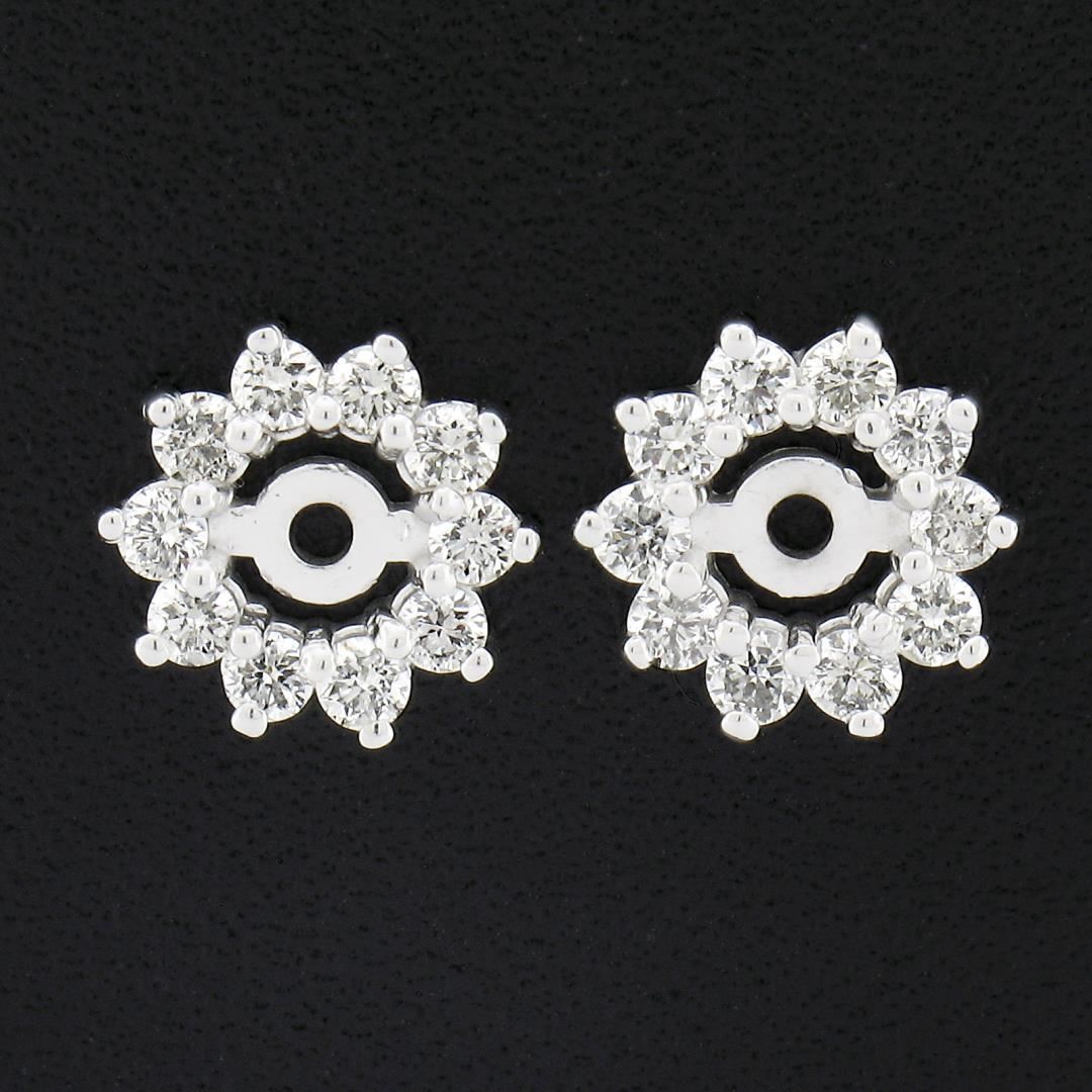 A new solid 14k white gold earrings jackets, with 20 round cut natural diamonds (G/H - VS2-SI2 ; 0.37ctw). The earrings measure approximately 7.7mm outside diameter, 3.3mm inside diameter. and weigh a total of 0.61 grams.