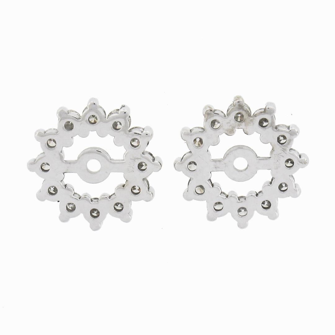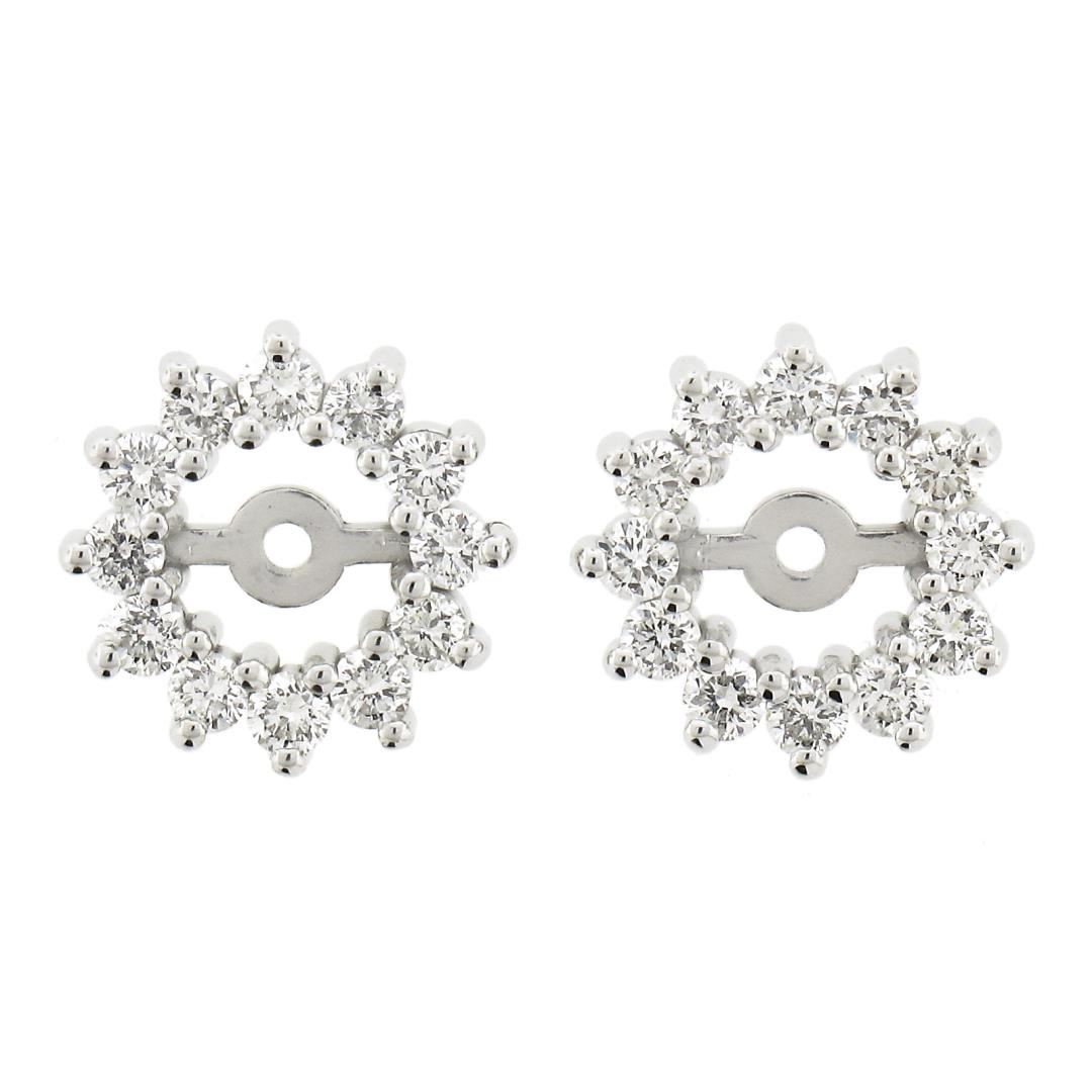 A new solid 14k white gold jacket earrings, with 24 round cut natural diamonds (G/I - VS2-SI2 ; 0.48ctw). The earrings measure approximately 9.4mm (outside diameter) - 4.3mm (inside diameter) and weigh a total of 1.11 grams.