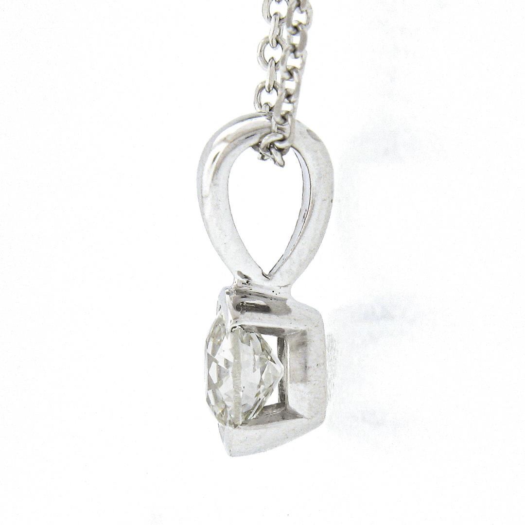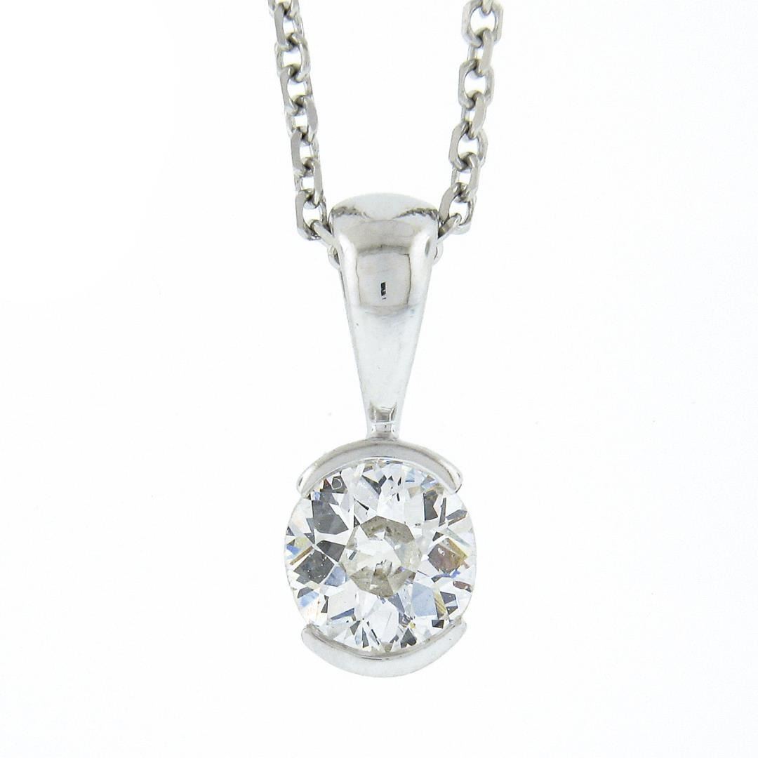 A new solid 14k white gold solitaire pendant necklace, with 1 old European cut natural diamond (H- VS2 ; 0.56ct). 18 inch cable link chain, 2.48 grams total weight, pendant measures 12.8x5.1mm.