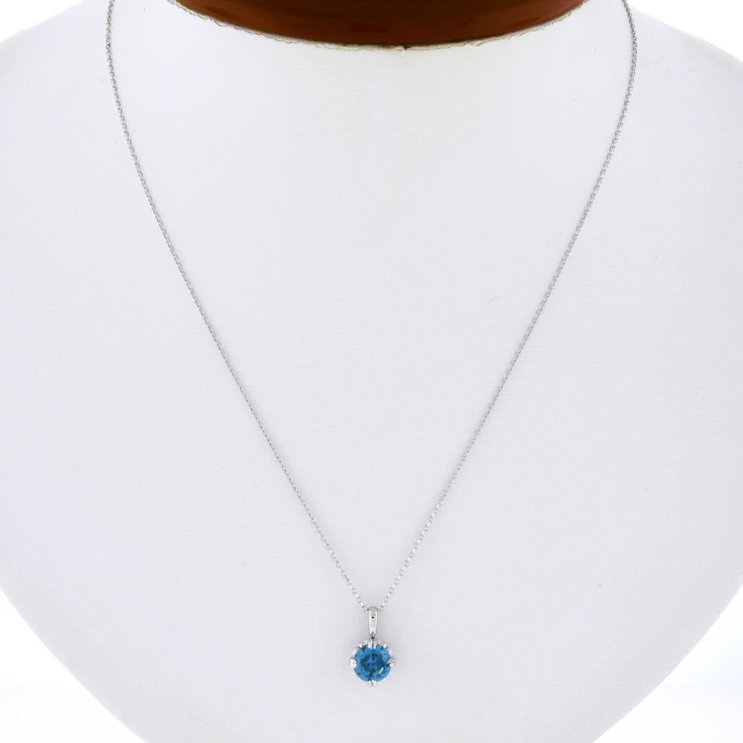 A new solid 14k white gold pendant necklace, with 1 round cut natural zircon (1.5ct). Adjustable 16 or 18 inch cable link chain, 2.02 grams total weight, pendant measures 12.5x7.6mm.