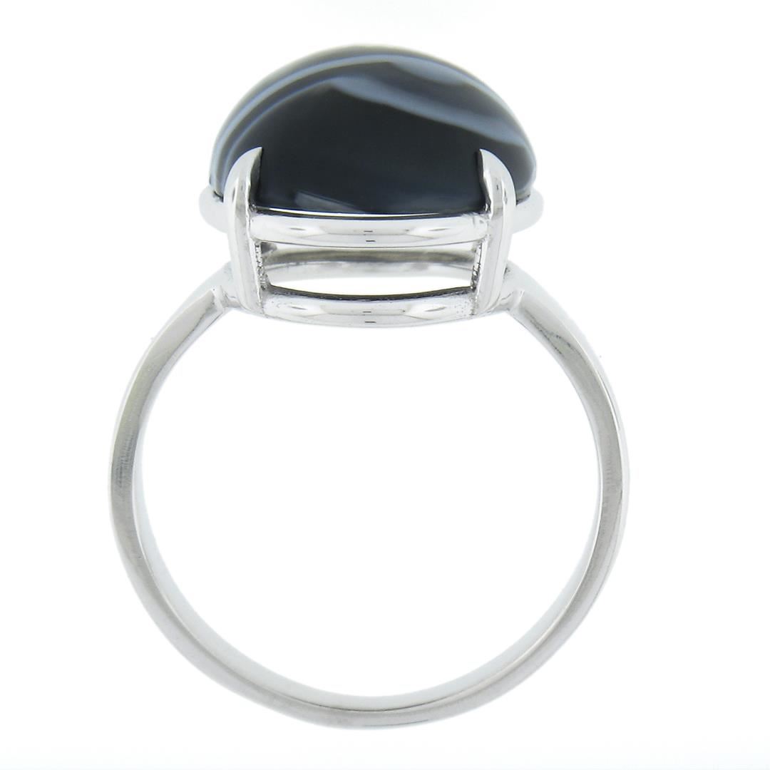New 14k White Gold 18.2x13mm Oval Cabochon Gray Banded Agate Solitaire Ring
