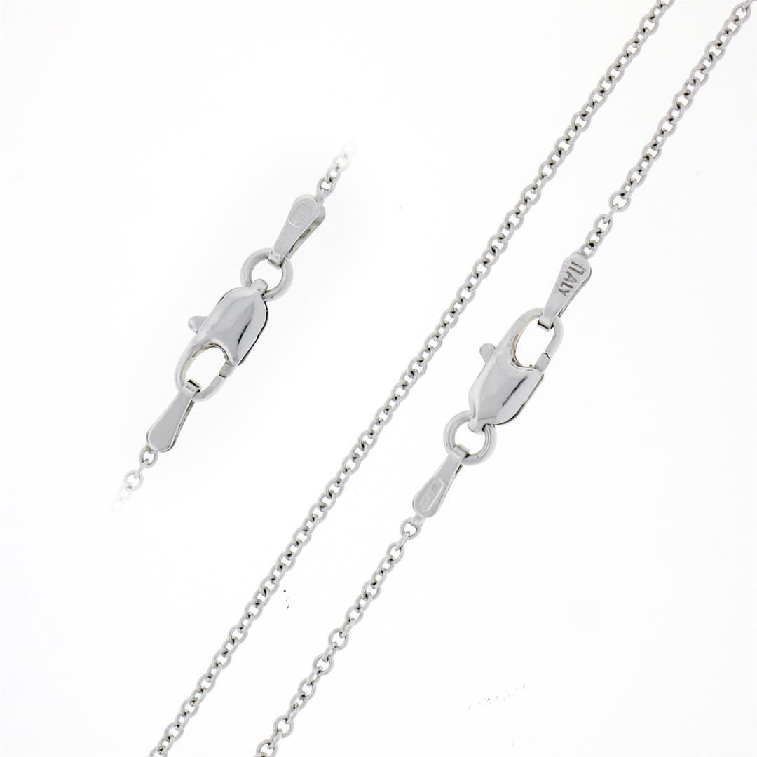 A new solid 14k white gold pendant necklace, with 1 oval brilliant cut natural tsavorite (9.7x7.6mm - 1.85ct), surrounded with a halo of 43 round brilliant cut natural diamonds (F/G - VS1/VS2 ; 0.74ctw). 16 inch cable link chain, 5.05 grams total weight, pendant measures 24.4x13.7mm.