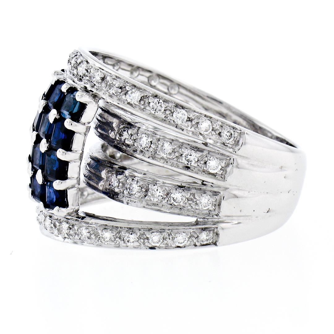 A new solid 18k whte gold square ring, with 16 round brilliant cut natural sapphires (2.50ctw), and 54 round brilliant cut natural diamonds ( F/G- VS1/VS2; 0.65ctw). The ring is size 6.5, weighs a total of 9.07 grams, and measures 17.0mm wide.