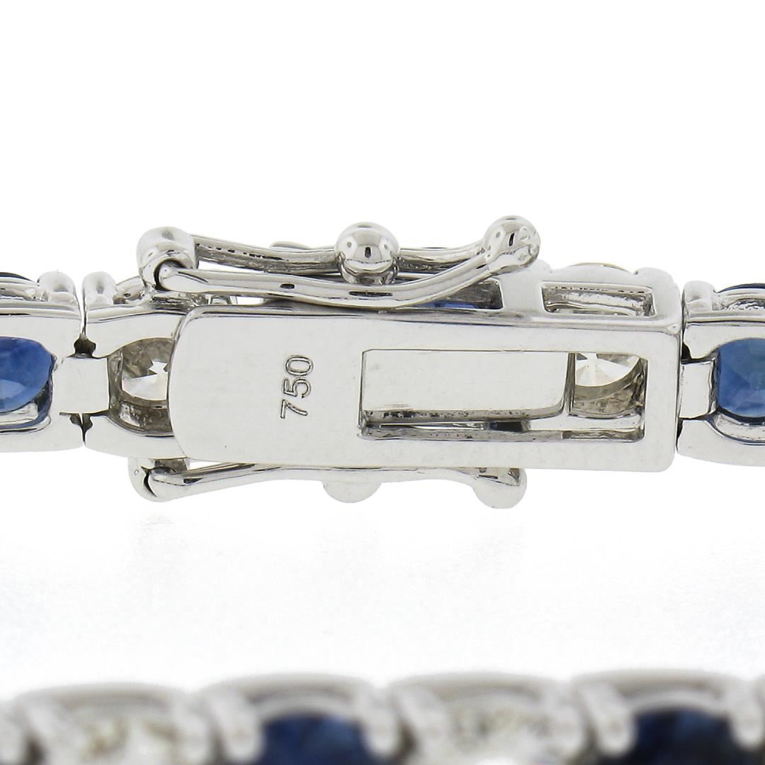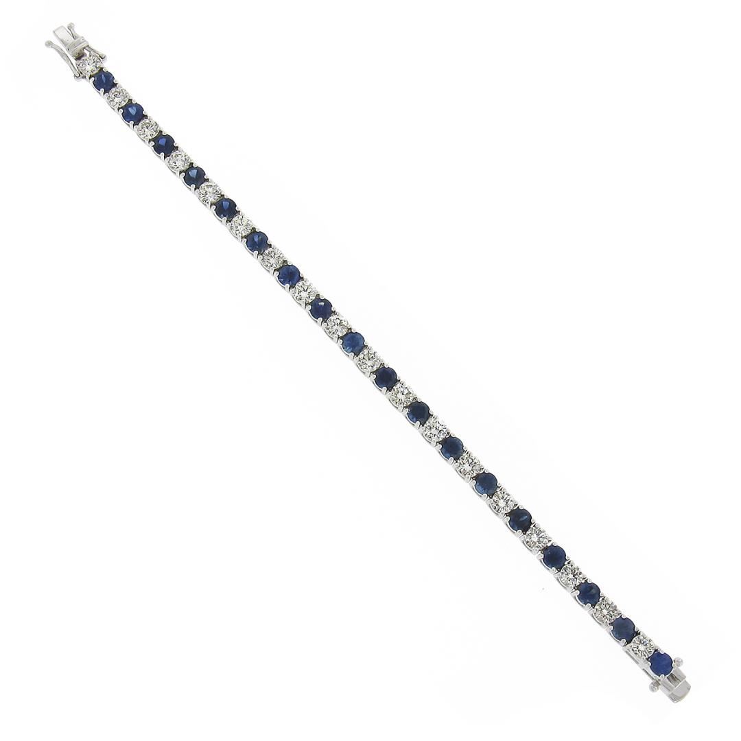 A new solid 18k white gold tennis line bracelet, with 18 round cut natural diamonds (H/I - VS2/SI1 ; 5.31ctw ), alternated with 18 round cut natural sapphires (6.95ctw). It weighs a total of 16.78 grams, measures 4.5mm wide, and measures 6.5 inches in length.