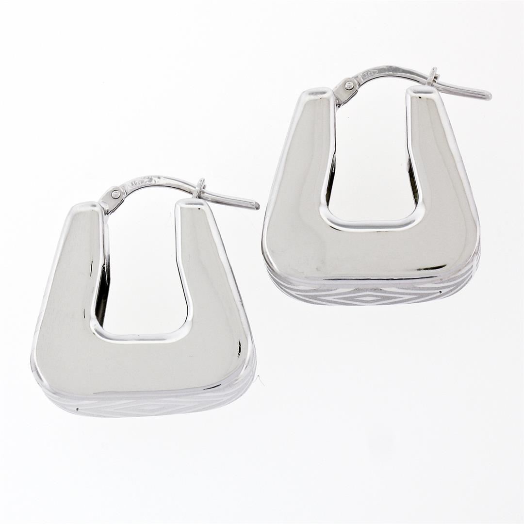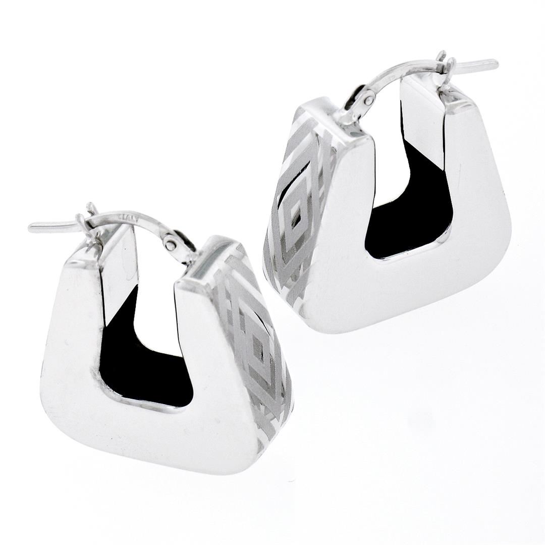 New Italian 14K White Gold Dual Finished Marquise Pattern Huggie Snap Earrings