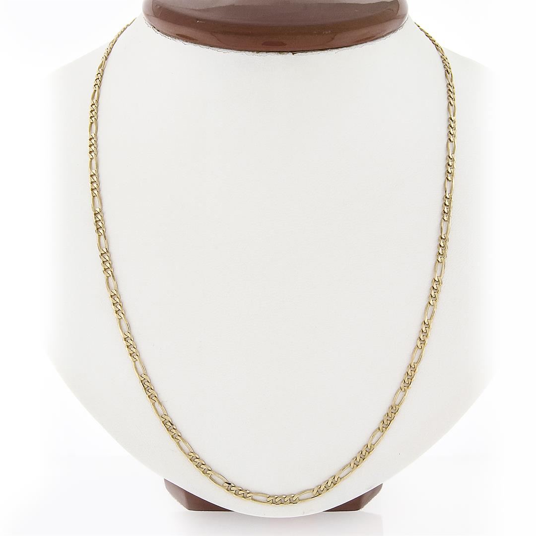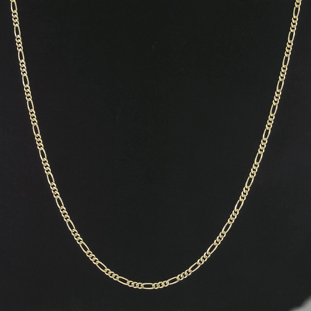 A solid 14k yellow gold figaro link chain necklace. It weighs a total of 11.92 grams, measures 3.08mm wide, and measures 30 inches in length.