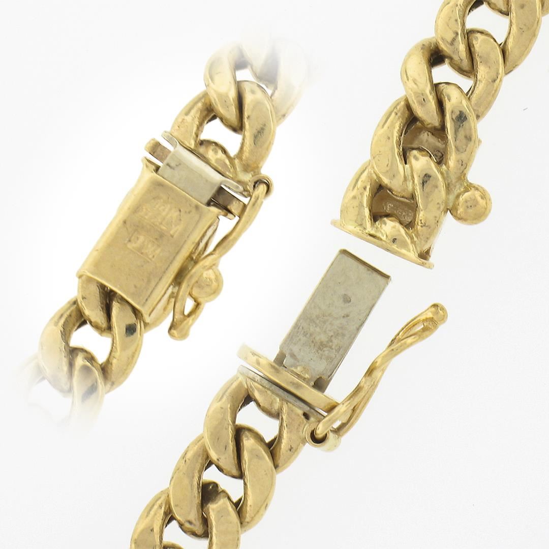 A new solid 14k yellow gold Cuban curb link bracelet. It weighs a total of 6.90 grams, measures 5.2mm wide, and measures 6.75 inches in length.
