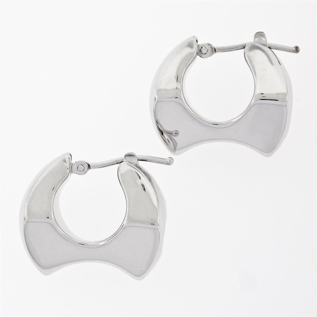 A new solid 14k white gold marquise shape snap earrings. The earrings measure approximately 17.50x9.60mm and weigh a total of 3.99 grams.