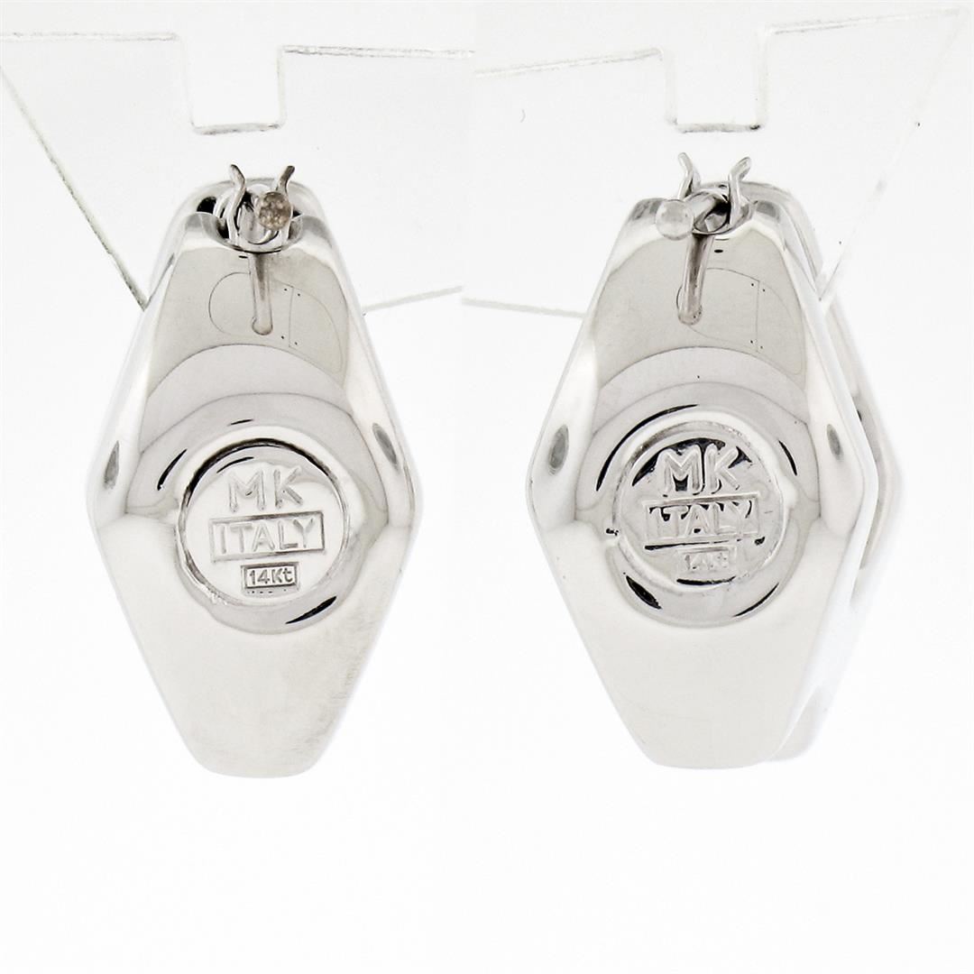 A new solid 14k white gold marquise shape snap earrings. The earrings measure approximately 17.50x9.60mm and weigh a total of 3.99 grams.