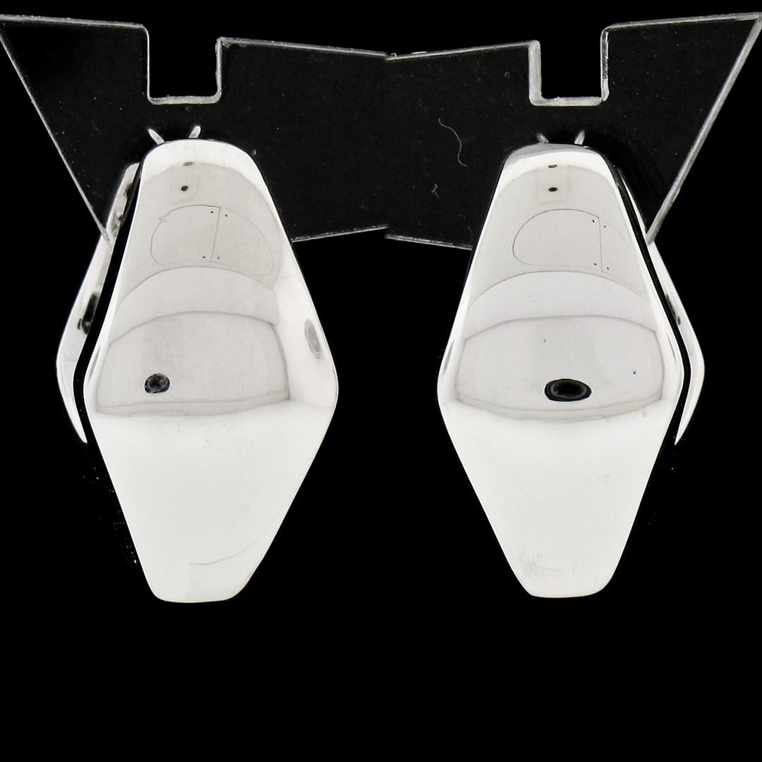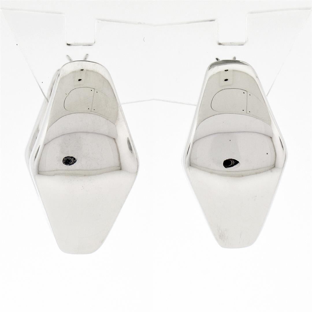 A new solid 14k white gold marquise shape snap earrings. The earrings measure approximately 17.50x9.60mm and weigh a total of 3.99 grams.