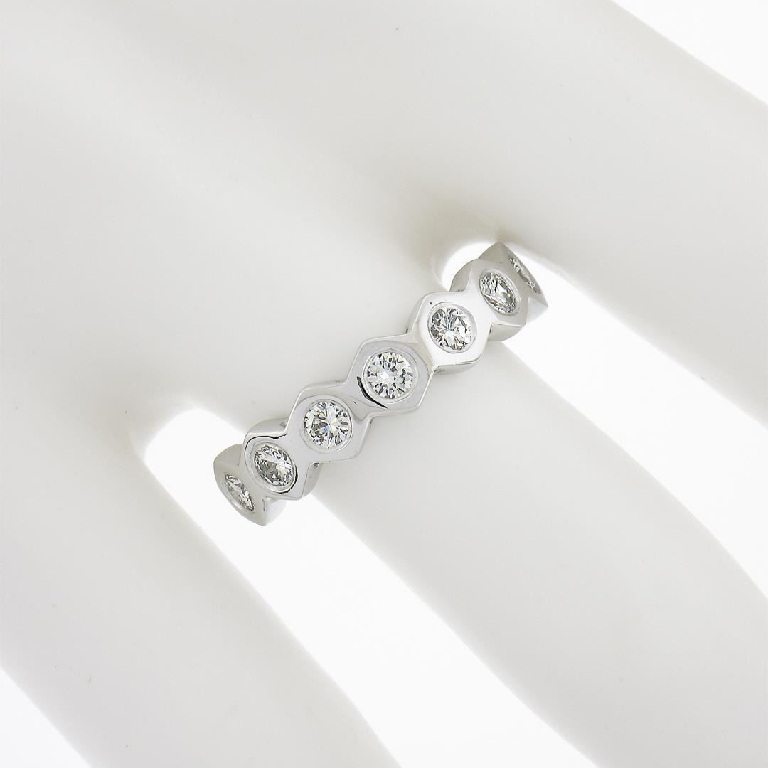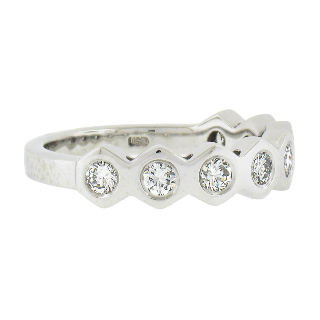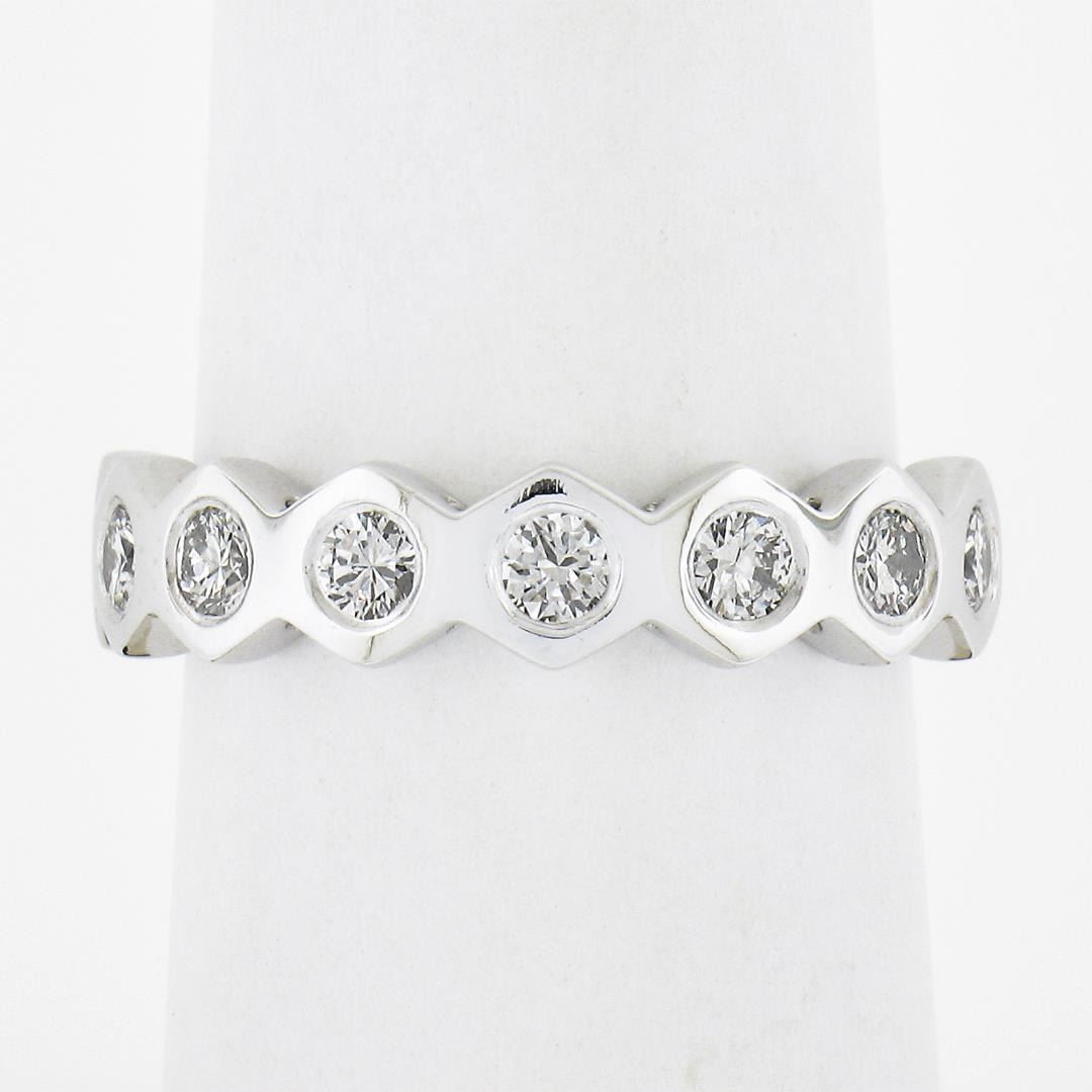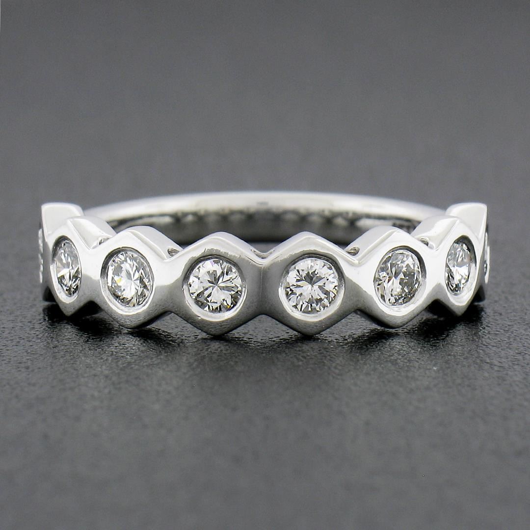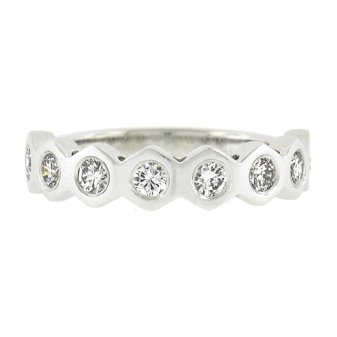 New Platinum 0.52 ctw Round Burnish Set Diamond Stackable Hexagon Shape Band Rin