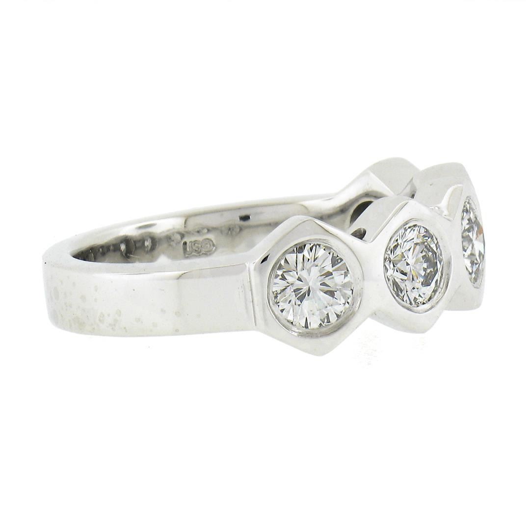 New Platinum 1.32 ctw Round Burnish Set Diamond Stackable Hexagon Shape Band Rin