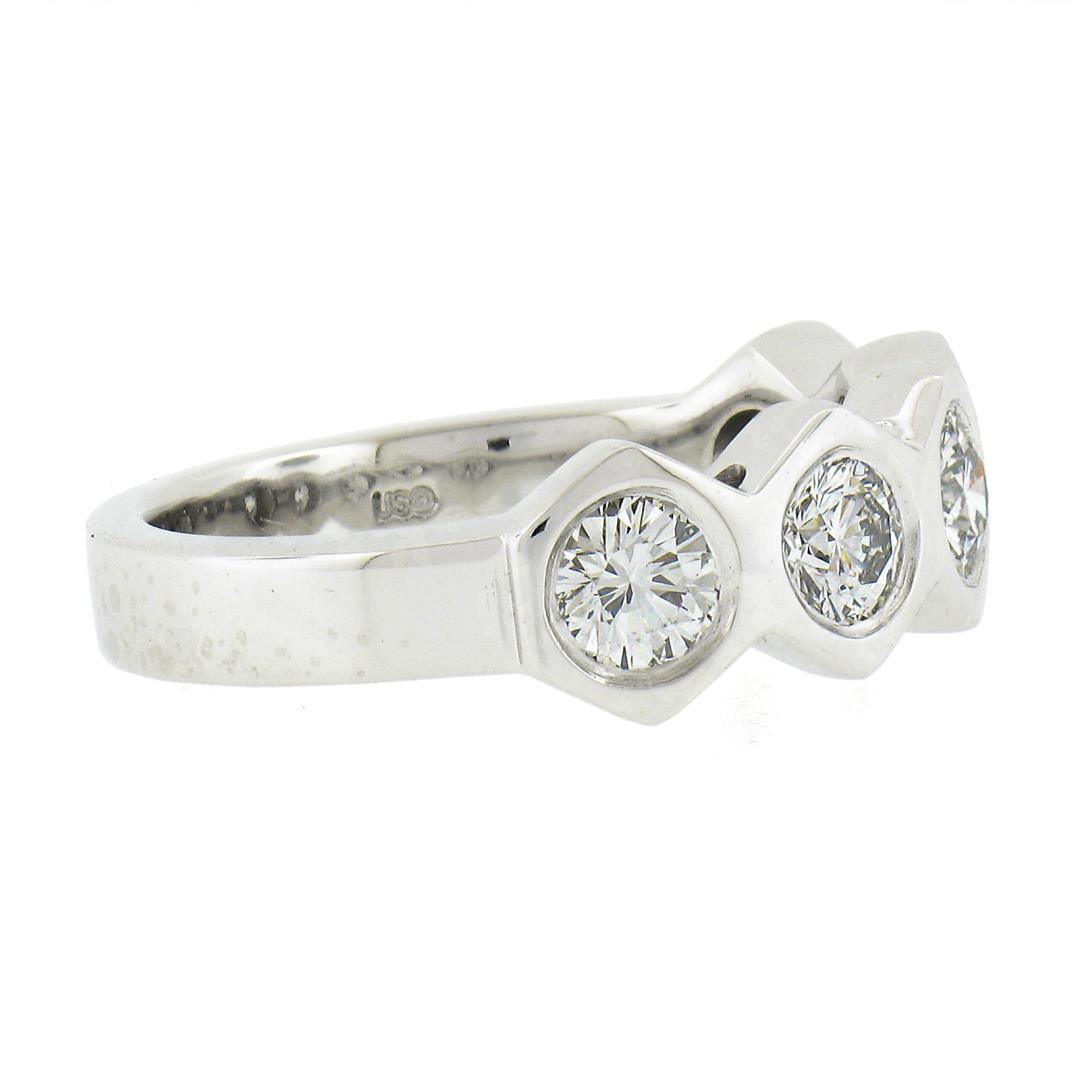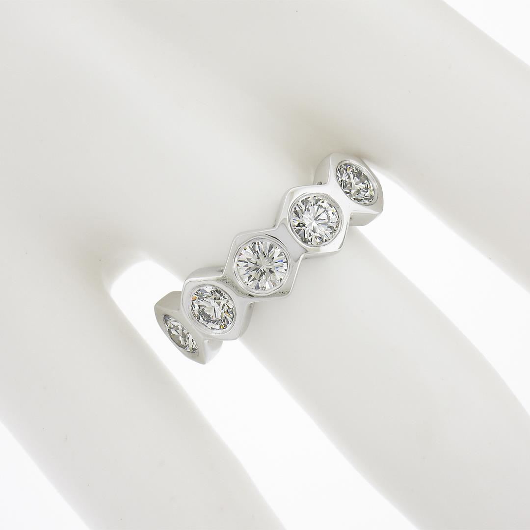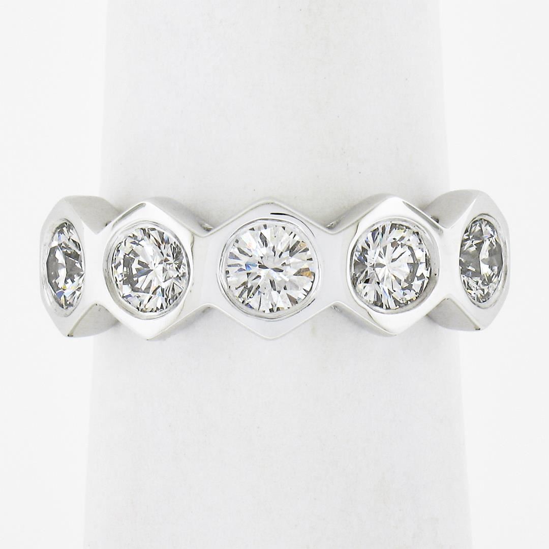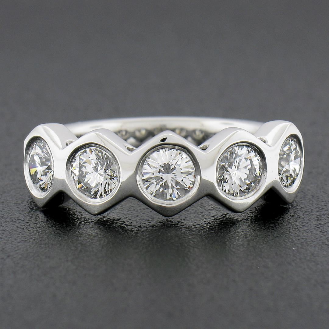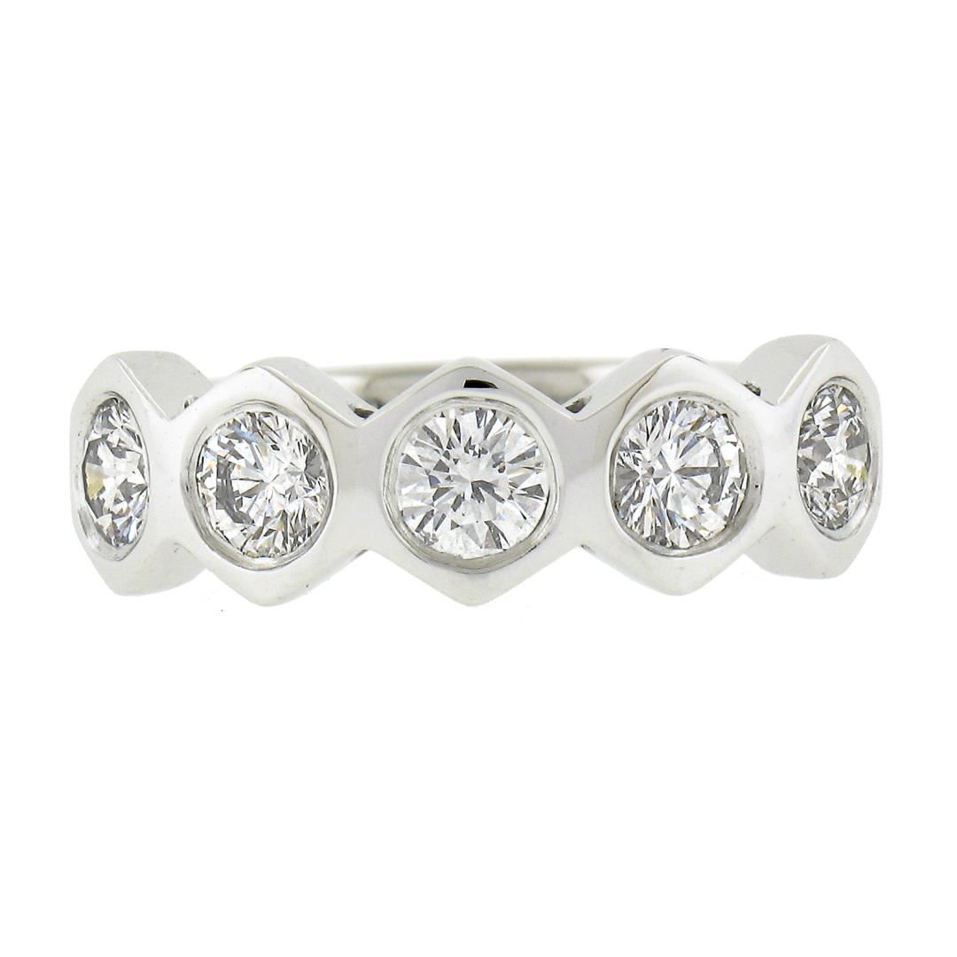 A new platinum band ring, with 5 round cut natural diamonds (F/G - VS1-SI1 ; 1.32ctw). The ring is size 6.0, weighs a total of 9.36 grams, and measures 6.6mm wide.