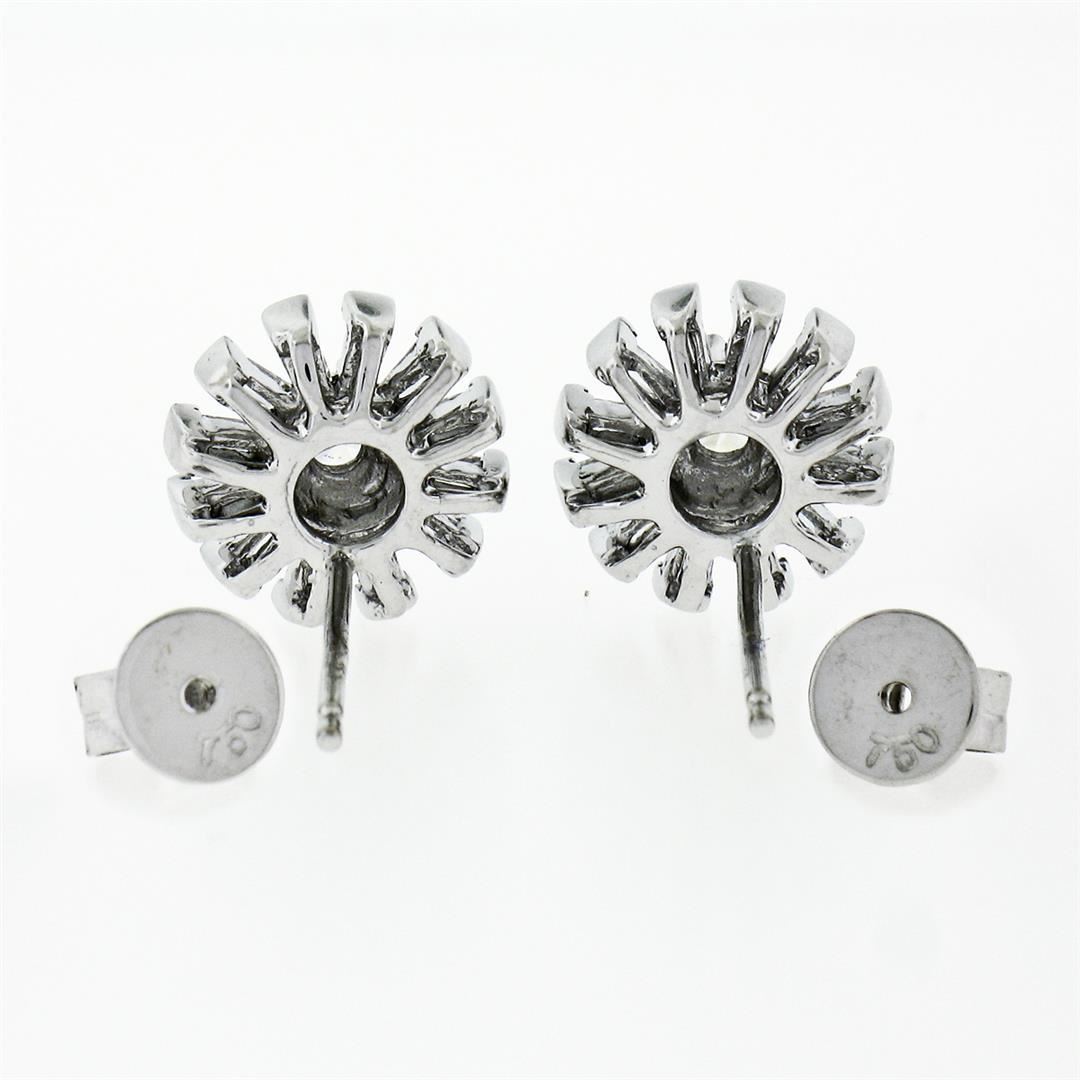 A New pair of solid 18k white gold snowflake stud earrings, with 2 round brilliant cut natural diamonds (F/G - VS2 ; 0.24ctw), surrounded with 24 baguette cut natural diamonds (F/G - VS1 ; 0.78ctw). The earrings measure approximately 10.10mm in diameter and weigh a total of 3.56 grams.