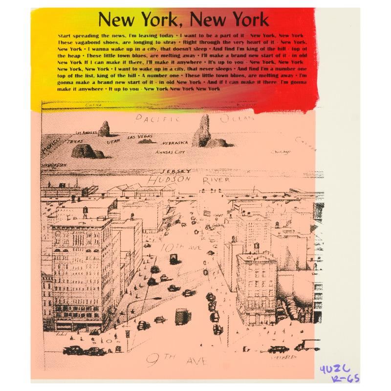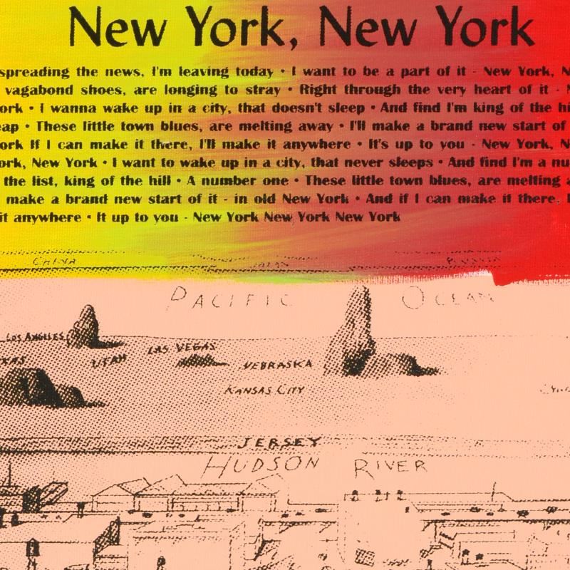 "New York, New York" is a one-of-a-kind hand-pulled silkscreen and mixed media painting on canvas by Ringo (Daniel Funes) - protege of Andy Warhol's apprentice, Steve Kaufman. This piece is hand signed by the artist and Includes Certificate of Authenticity. This piece comes from the Andy Warhol Legacy Series. Measures approx. 14" x 16" (image). ** Please note: the signature for this piece is located within the right border and will be outside the display image when framed; see photo for reference. **