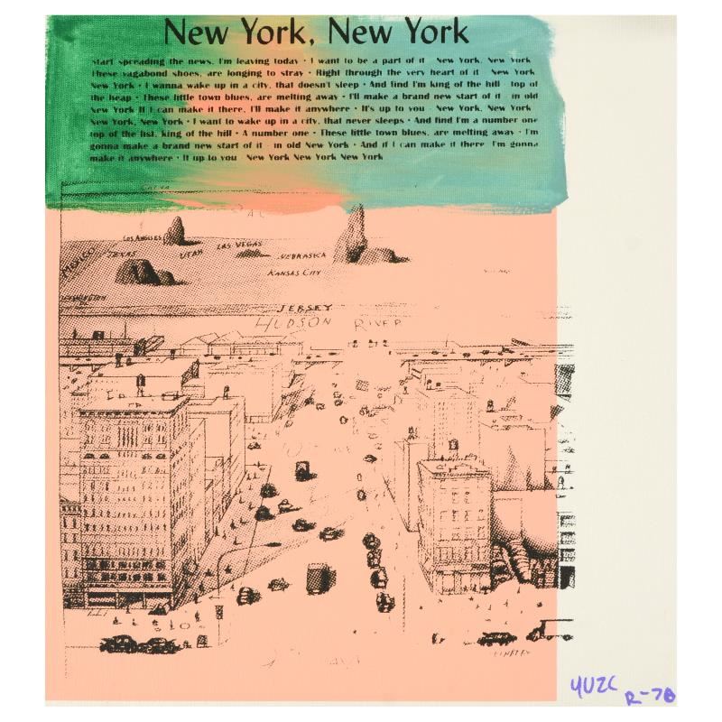 "New York, New York" is a one-of-a-kind hand-pulled silkscreen and mixed media painting on canvas by Ringo (Daniel Funes) - protege of Andy Warhol's apprentice, Steve Kaufman. This piece is hand signed by the artist and Includes Certificate of Authenticity. This piece comes from the Andy Warhol Legacy Series. Measures approx. 14" x 16" (image). ** Please note: the signature for this piece is located within the right border and will be outside the display image when framed; see photo for reference. **