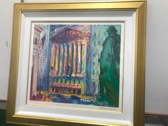 "New York Stock Exchange" by LeRoy Neiman (1921-2012) - Hand signed limited edition serigraph #27 of 400. Framed size = 42" x 45"
