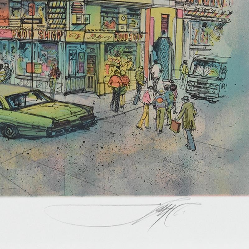 New York by Rafflewski, Rolf. "New York" is a limited edition lithograph on paper by Rolf Rafflewski, numbered and hand signed by the artist. Includes Letter of Authenticity. Measures approx. 22" x 15" (border), 19" x 12.5" (image). There may be minor imperfections but the piece is in overall good condition.