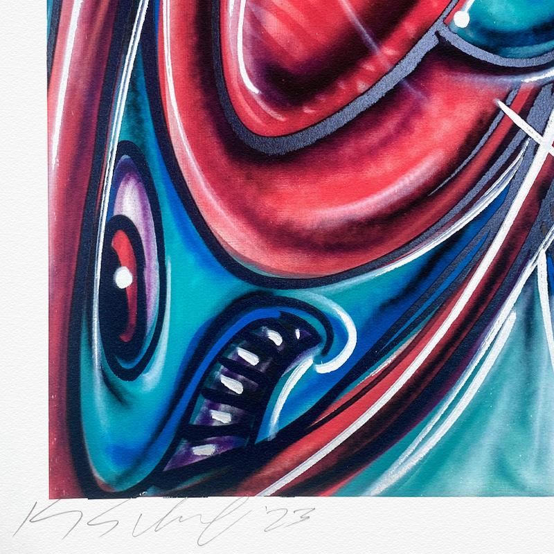 "Newazy" is a limited edition silkscreen on deckled edge paper by Kenny Scharf, numbered and hand signed by the artist. This piece comes custom framed. Includes Letter of Authenticity. Measures approx. 29" x 33.5" (frame), 22" x 26.5" (image). This item requires special handling and may have a longer than usual turnaround.