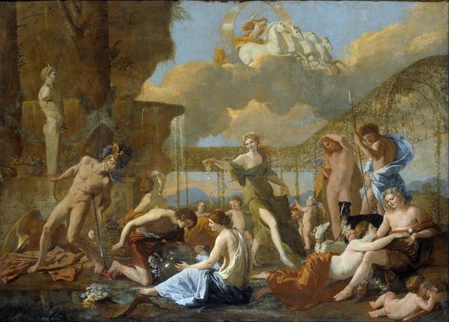 Artist: Nicolas Poussin - Title: The Empire of Flora - Medium: Fine Art Reproduction Giclee on Canvas - Image Size: Approximately 23 inches x 32 inches - Unframed on Unstretched Canvas - Biography: Nicolas Poussin (June 1594 - 19 November 1665) was the leading painter of the classical French Baroque style, although he spent most of his working life in Rome. Most of his works were on religious and mythological subjects painted for a small group of Italian and French collectors. He returned to Paris for a brief period to serve as First Painter to the King under Louis XIII and Cardinal Richelieu, but soon returned to Rome and resumed his more traditional themes. In his later years he gave growing prominence to the landscapes in his pictures. His work is characterized by clarity, logic, and order, and favors line over color. Until the 20th century he remained a major inspiration for such classically-oriented artists as Jacques-Louis David, Jean-Auguste-Dominique Ingres and Paul Cezanne.