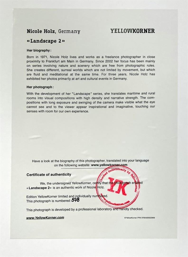 Nicole Holz Germany Landscape 2 YellowKorner Certified Photograph. Certificate of Authenticity from YellowKorner affixed to the back. Matted Dimensions 16"x20". Protected with Clear Mylar Sleeve.