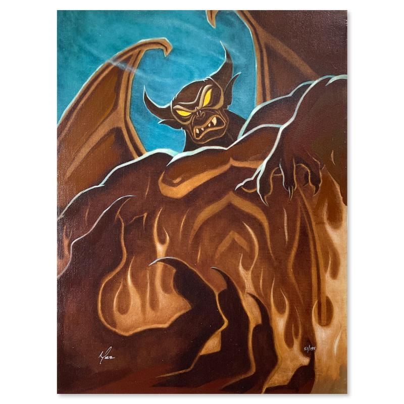 "Night on Bald Mountain" is a limited edition giclee on stretched canvas by Mike Kupka, numbered 5/195 and hand signed by the artist. This piece is licensed by Disney Fine Art. Includes Letter of Authenticity. Measures approx. 15" x 20" (image). There are minor scuffs on the corners and edges.