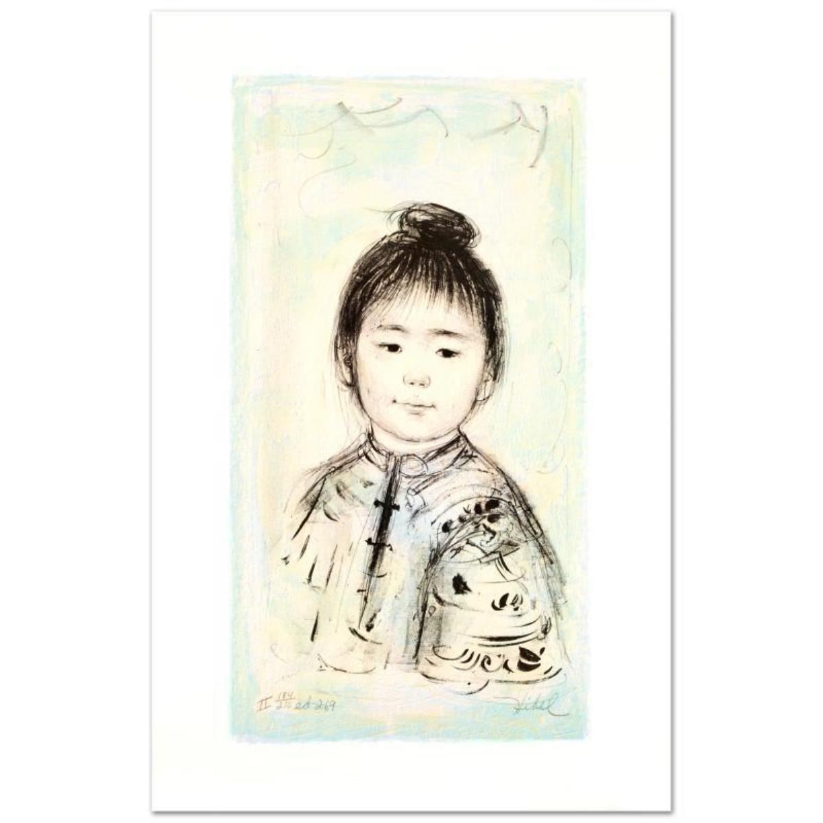 "Nina" is a limited edition lithograph on paper, numbered and hand signed by Edna Hibel (1917-2014). Includes Certificate of Authenticity! Measures approx. 12.5" x 20" (with border), 9" x 16.5" (image).