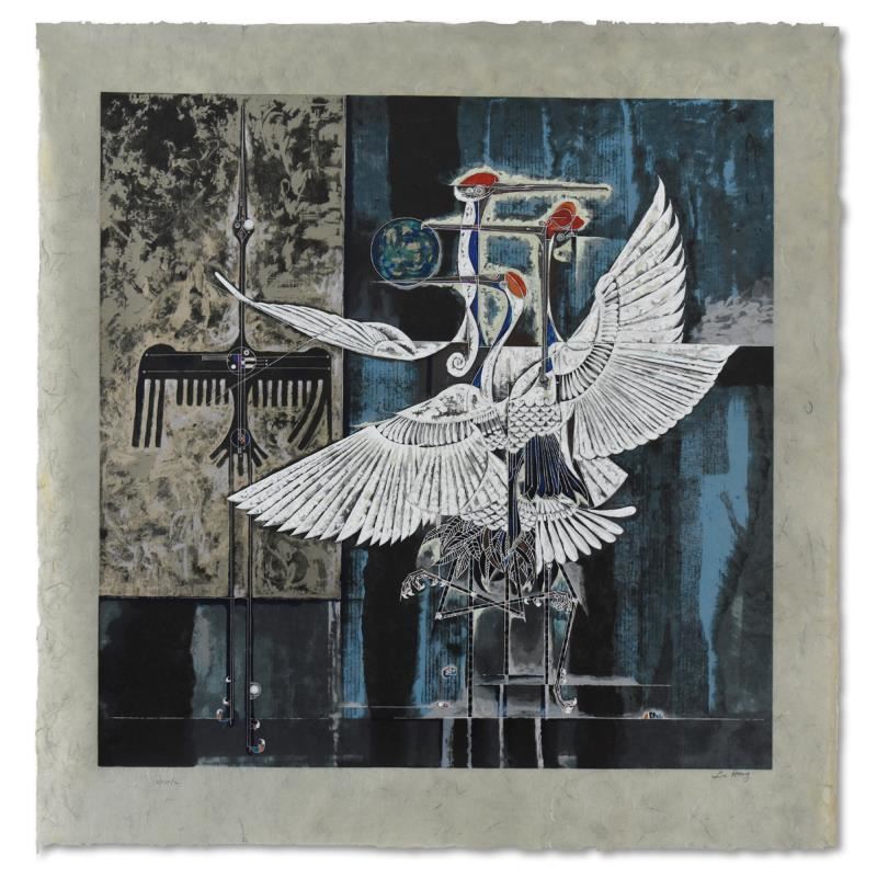"Nocturne" is a limited edition serigraph on rice paper by Lu Hong, numbered and hand signed by the artist. Includes Letter of Authenticity. Measures approx. 34" x 35" (border), 29" x 29" (image).
