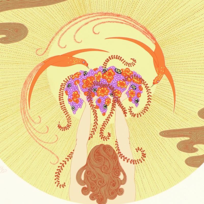 "Noon" is a limited edition serigraph on paper by Erte (1892-1990), numbered and hand signed by the artist. Includes Certificate of Authenticity. Measures approx. 11" x 13.5" (border), 9.5" x 9.5" (image). Due to the age of this piece and the delicate nature of the paper it may have some slight imperfections.