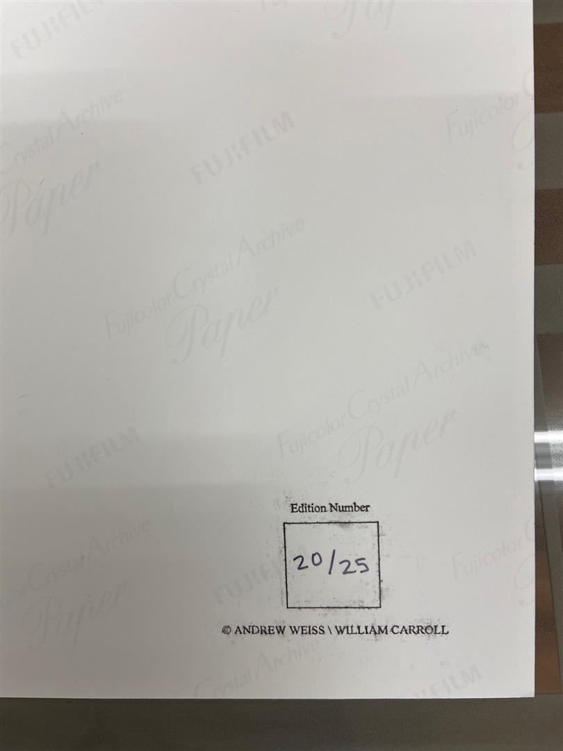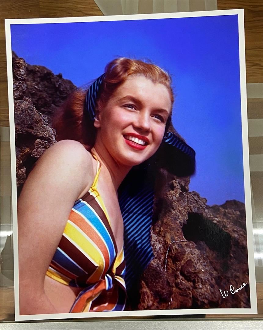 William "Bill" Carroll was the first photographer to shoot Marilyn for her first paid sitting at Castle Rock beach in Malibu 1945. This 14x11" signed color c-print from the original negatives is # 20/25 signed by CARROLL.
