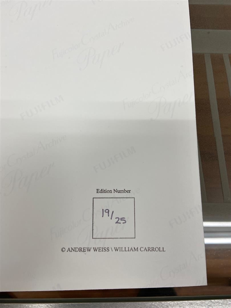 William "Bill" Carroll was the first photographer to shoot Marilyn for her first paid sitting at Castle Rock beach in Malibu 1945. This 14x11" signed color c-print from the original negatives is # 19/25 signed by CARROLL.
