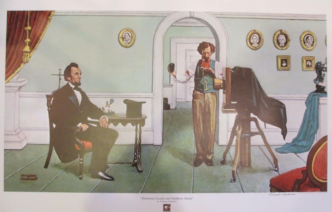 Norman Rockwell "Abraham Lincoln & M. Brady" Facsimile Signed Lithograph Dimensions: 38 x 25 inches