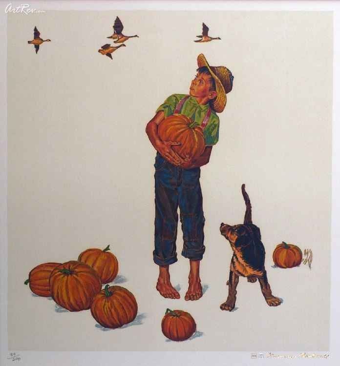 Norman Rockwell "Autumn Harvest (Encore Edition)" Encore Edition, Limited Edition, Numbered Lithograph, Estate Stamped Signature Dimensions: 25 x 23 inches (Note: edition number received may differ from photo)