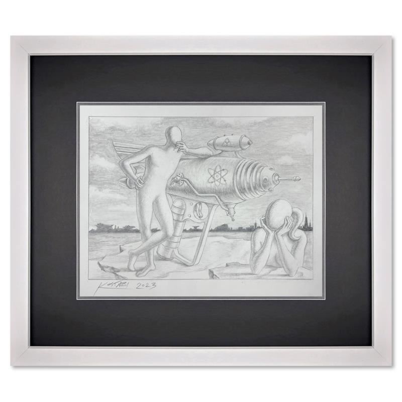 "Not the Only Star" is an original drawing on paper by Mark Kostabi, hand signed by the artist. This piece comes custom framed and includes a certificate of authenticity. Measures approximately 13.5" x 15" (frame), 7.5" x 9" (image). This item requires special handling and may have a longer than usual turnaround.