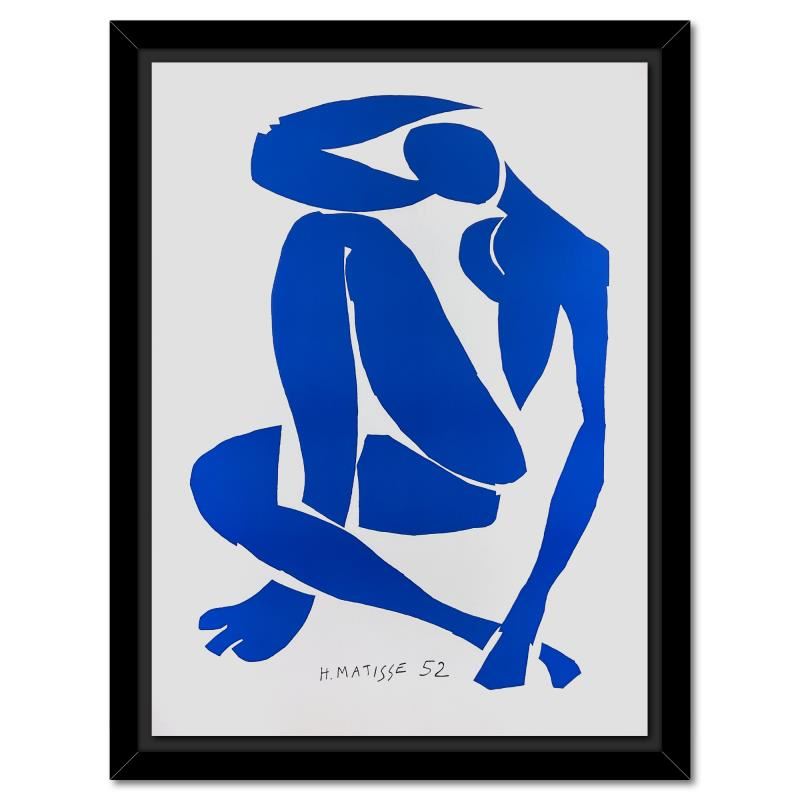 "Nu Bleu IV" is a limited edition lithograph by Henri Matisse (1869-1954) bearing the plate signature of the artist. This piece comes from an edition of 200 authorized by the Matisse Estate; the edition number is not on the piece itself but on the certificate. This piece comes custom framed. Includes Certificate of Authenticity. Measures approx. 28.5" x 37" (frame), 22.5" x 31" (image).