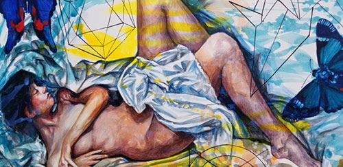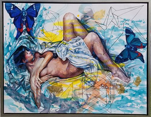 Brilliant original acrylic and oil pastels on canvas. Hand signed by artist. This artwork comes framed, ready to hang. 42x32 Artwork 40x30