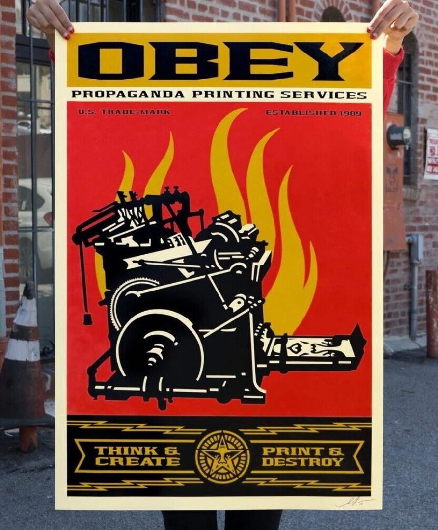 A hand-signed Classic Street Art poster by Shepard Fairey. One of the artist's signature images, pencil-signed with COA sticker. Poster is 36x24 unframed.