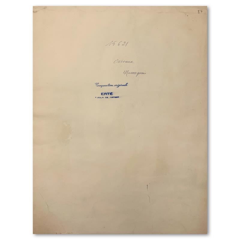 "Oiseaux, mannequins" is an original gauche painting on paper by Erte (1892-1990), hand signed by the artist. This piece bears the stamp, title and registration number 15.621 inverso. Includes Letter of Authenticity. Measures approx. 10.5" x 14.5".