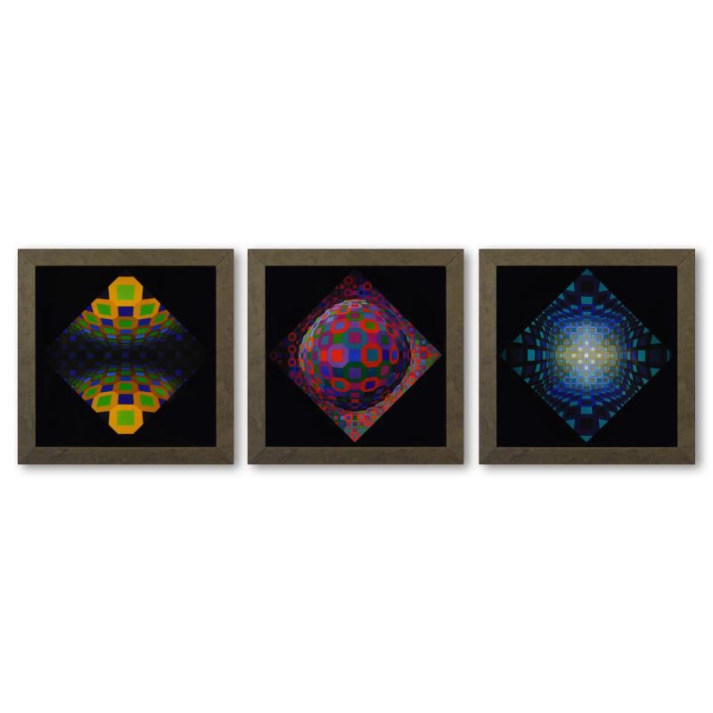 Okta - Stri, Planetary, et Ondocto - Re de la serie Structures Universelles De L'Octogone (Triptych) by Vasarely (1908-1997). "Okta - Stri, Planetary, et Ondocto - Re de la série Structures Universelles De L'Octogone (Triptych)" is a set of heliogravure p