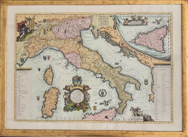 A beautifully framed reproduction on paper of an Old World Map of Italy by unknown artist, measures 32 x 23.75" framed