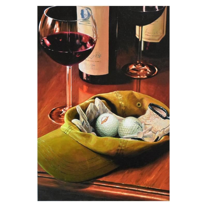 "Olympic Club" is a numbered limited edition giclee on canvas by Nobu Hairara. It comes bearing the artist's authorized signature and with a Certificate of Authenticity. Measures approximately 14.25"x9.5" (image).