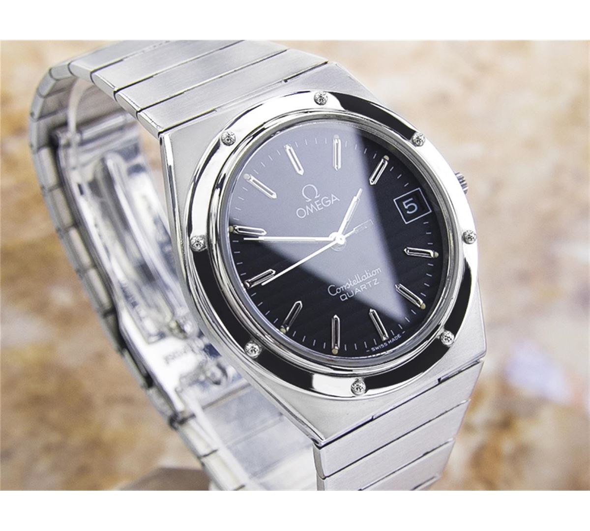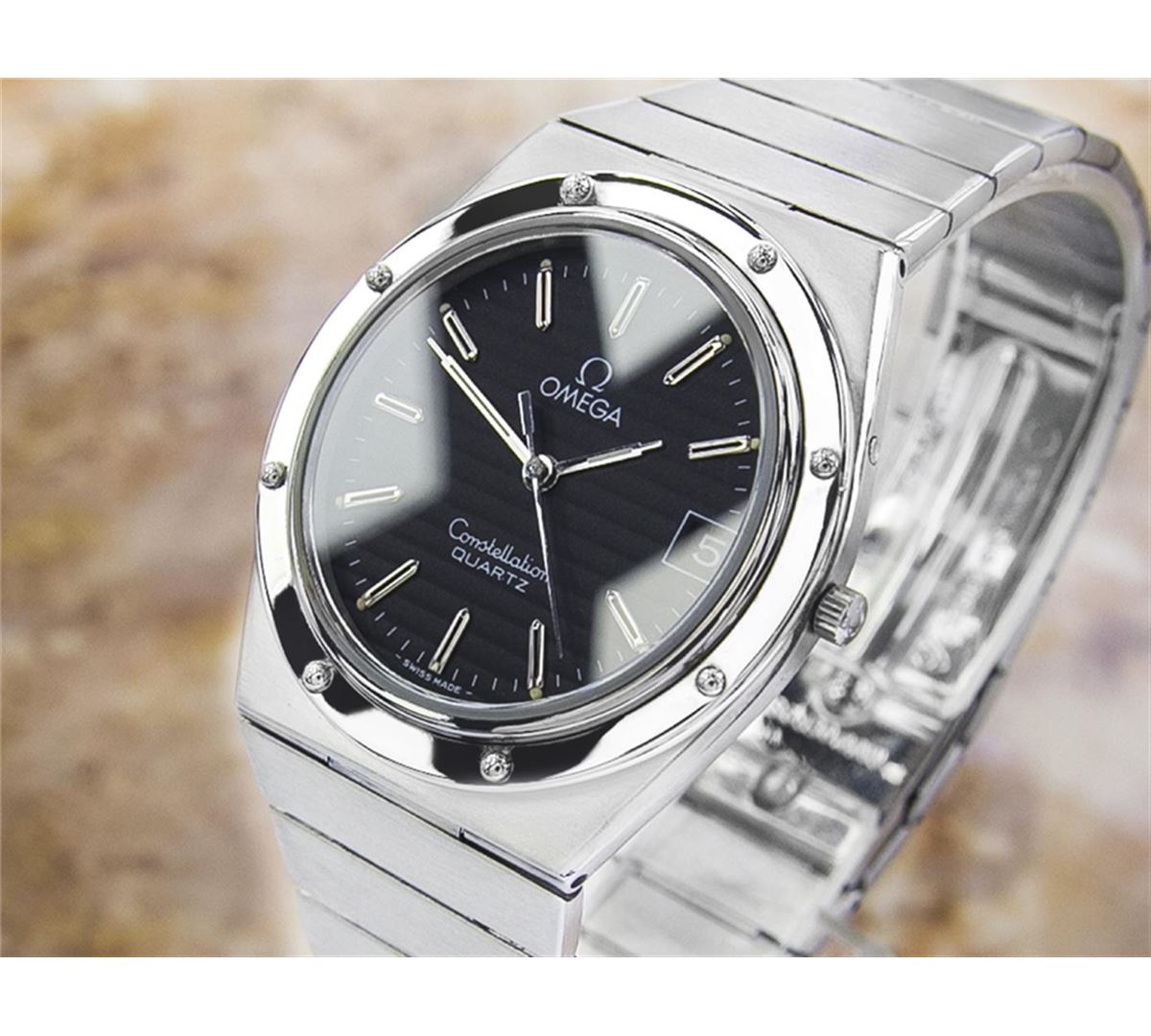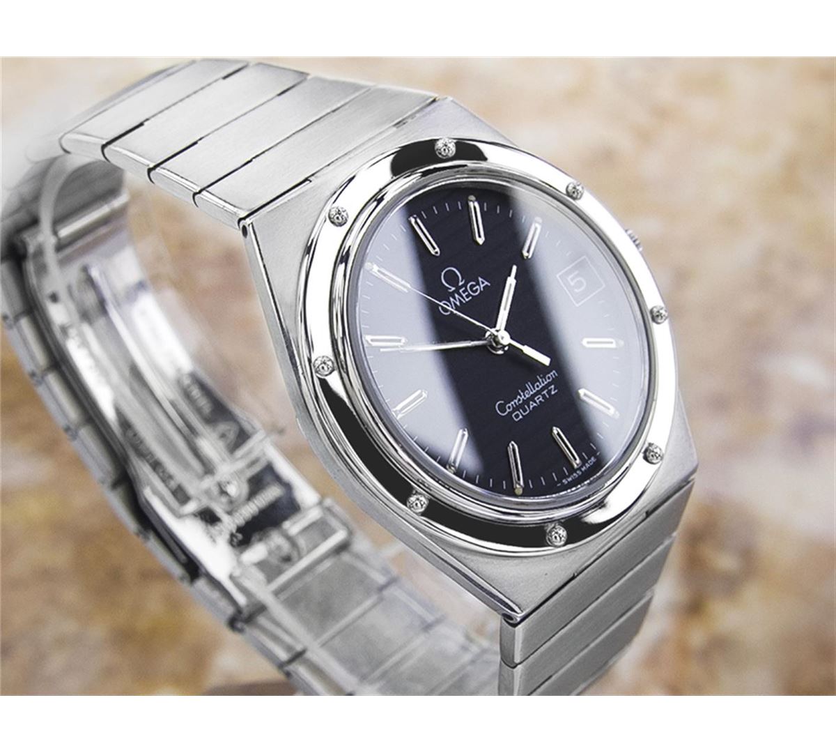 Omega Constellation Accuset Stainless Steel Quartz Watch. Brand: OMEGA. Model: Constellation. Movement: Quartz. Case Material: Stainless Steel. Crystal: SAPPHIRE. Case Size: 39X35. Band: ORIGINAL OMEGA SS BRACELET.
