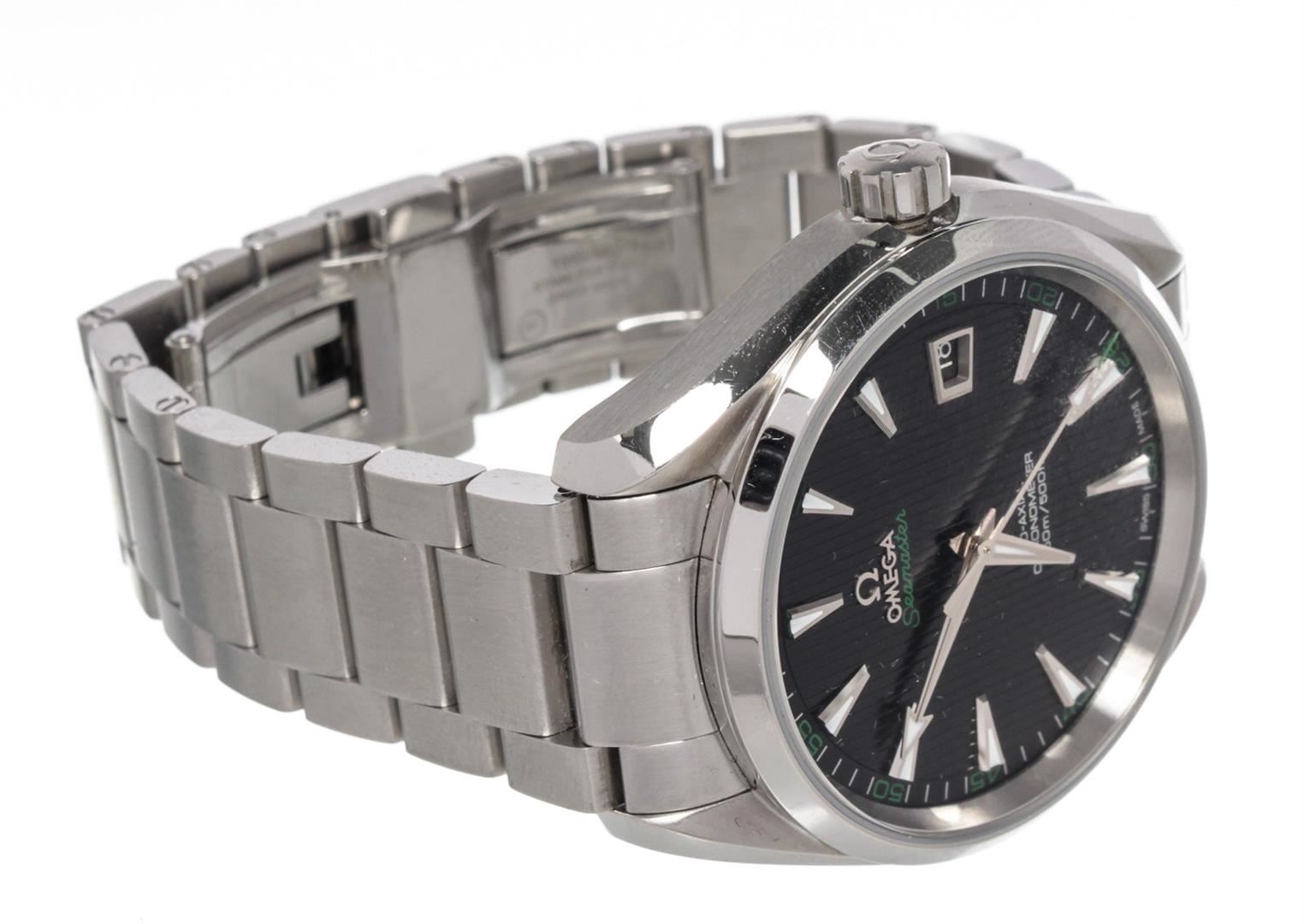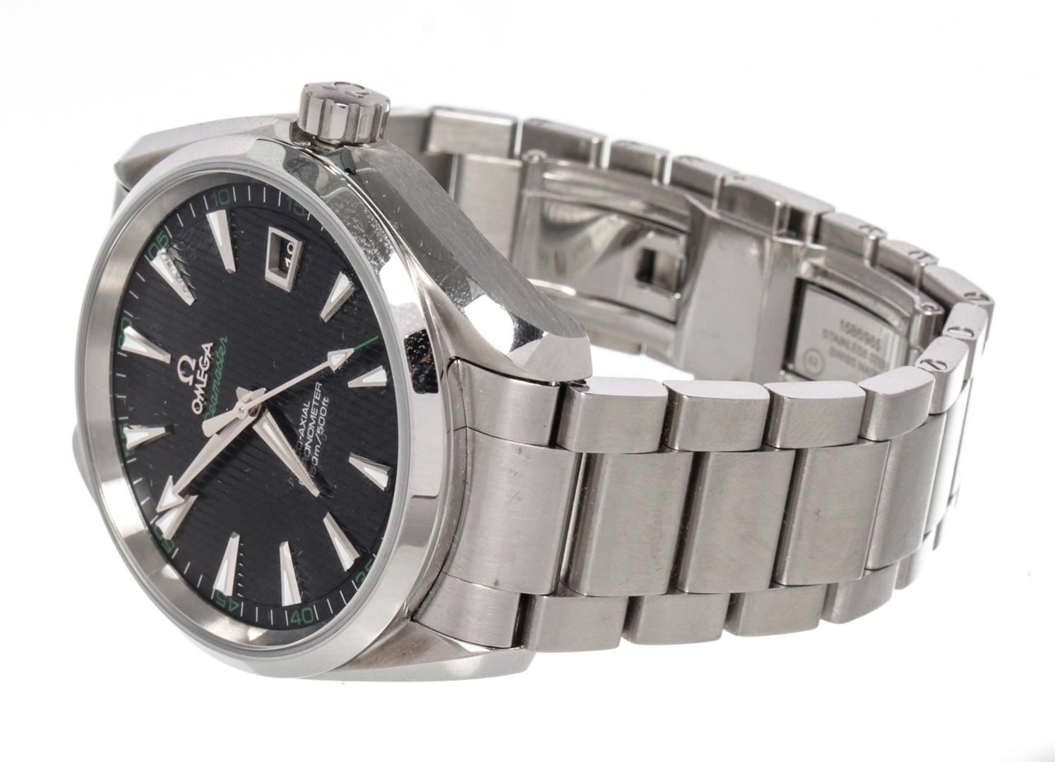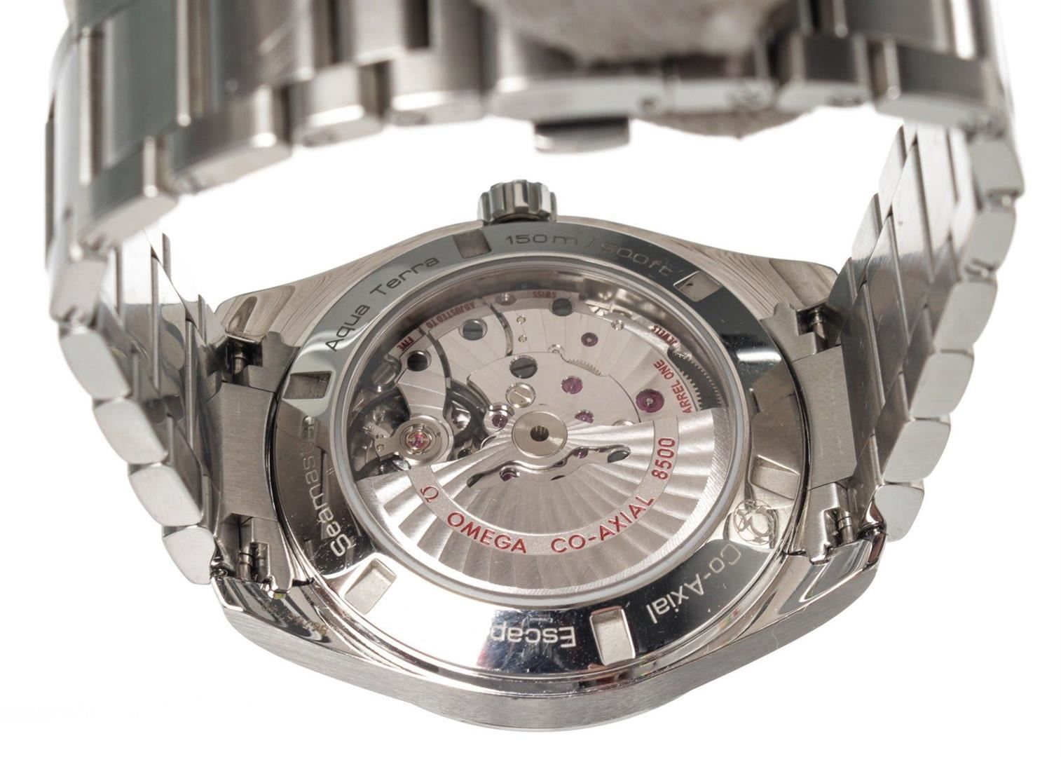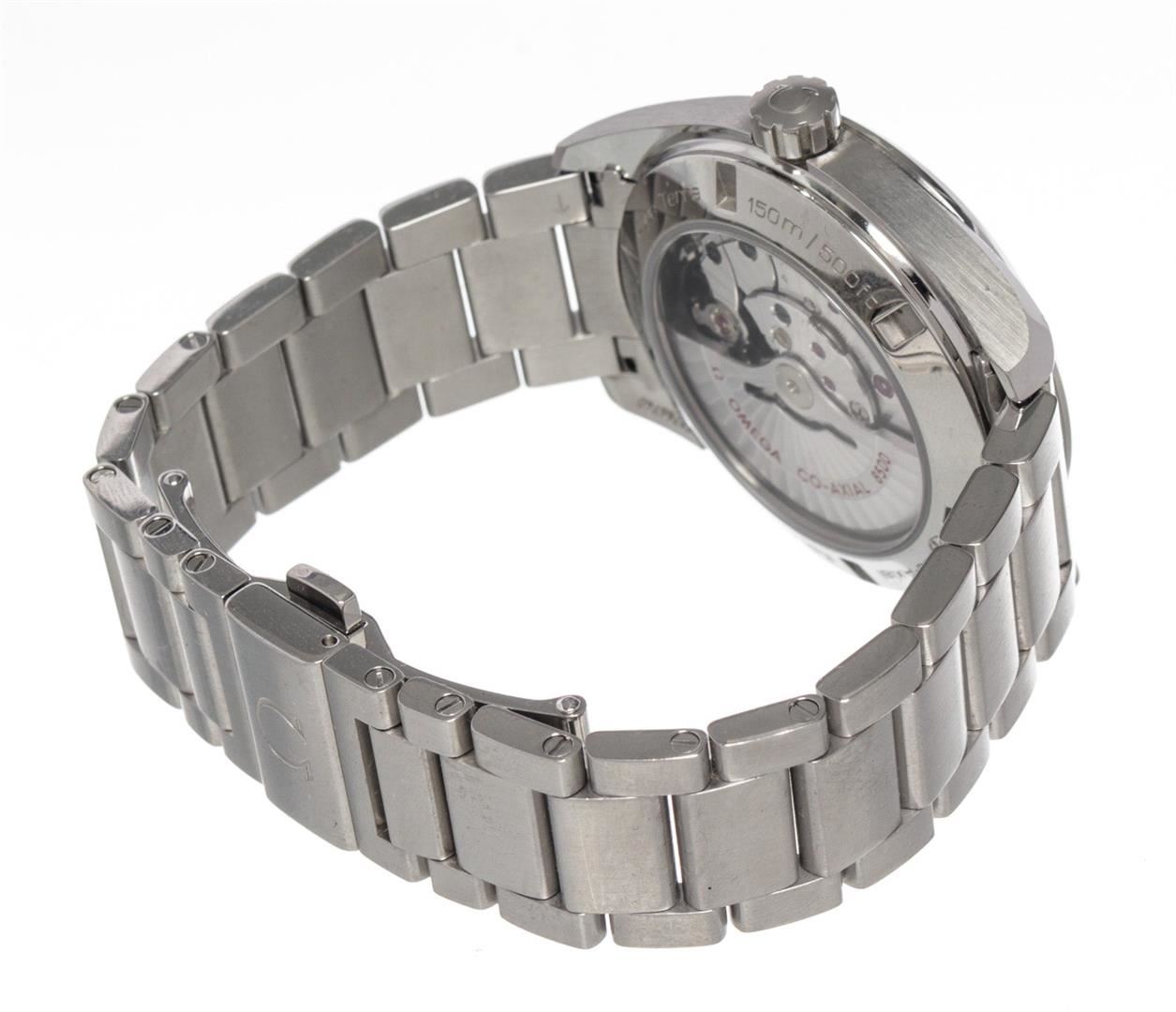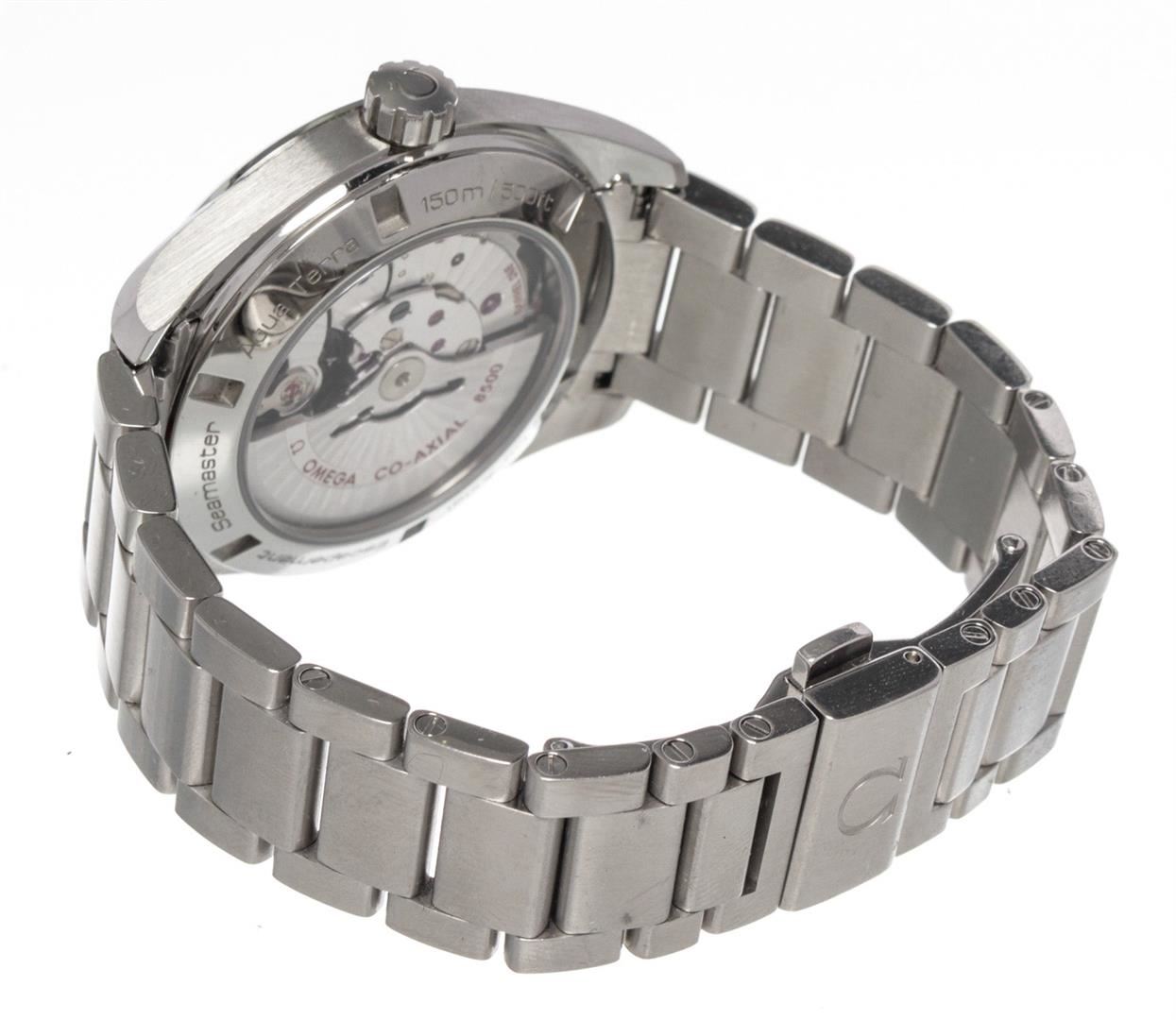 Omega Silver Seamaster Aqua Watch with silver tone hardware.