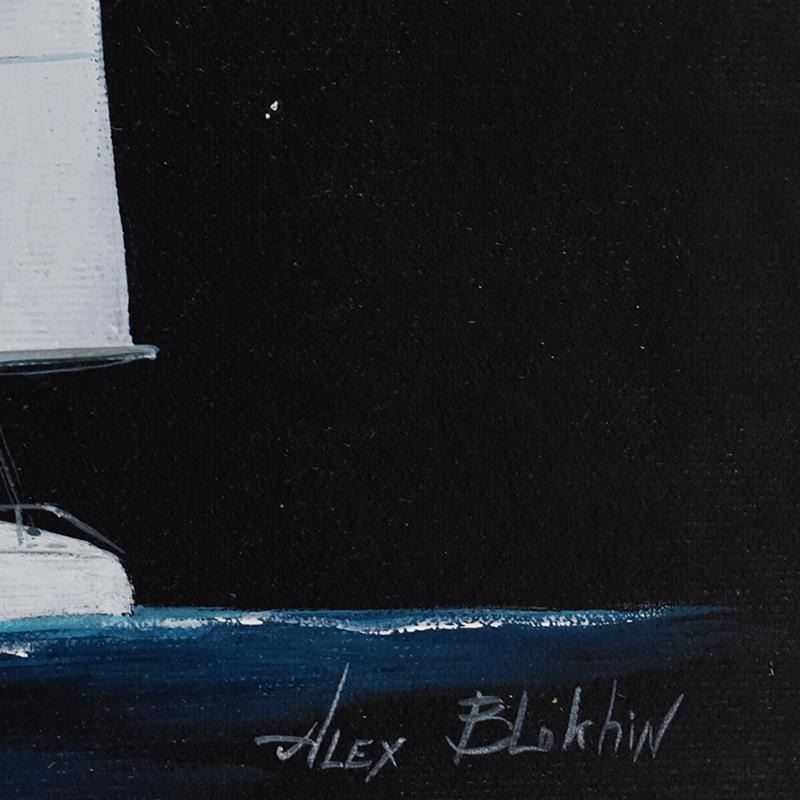 "One Masted Yacht" is an original oil painting on canvas by Alex Blokhin, hand signed by the artist. Includes Letter of Authenticity. Measures approx. 17" x 13" (image).