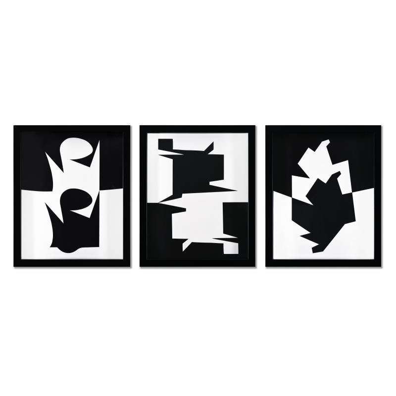 "Ontil, Uzok, et Imbituba de la serie Etres Ou Fantomes (Triptych)" is a set of heliogravure prints on paper, published in 1973, by Victor Vasarely (1908-1997). These pieces come custom framed, with a letter of authenticity and with a 1976 Vasarely paperback. Measures approx. 12.5" x 15" (frame), 10" x 13" (image).